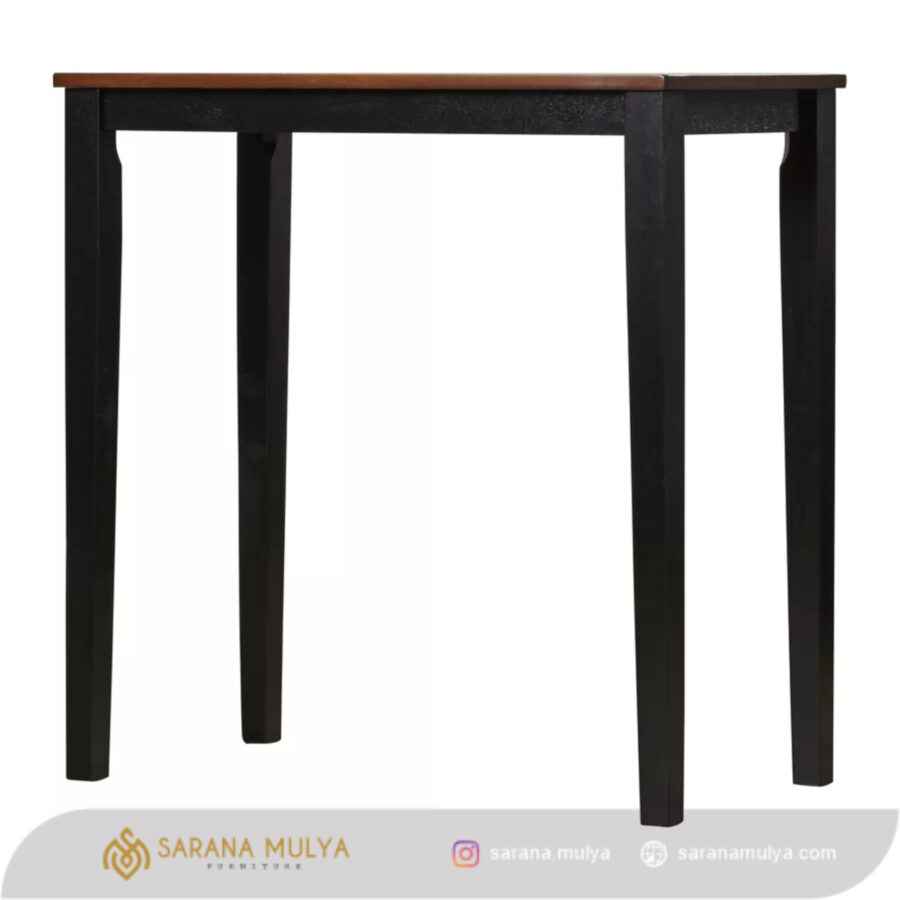 Bar Stool Set Sederhana Kayu Minimalis ini dapat dihadirkan untuk melengkapi interior tempat usaha seperti kafe, restoran maupun hotel berkonsep modern. Set meja bar ini Terdiri dari 1 meja bar dan 2 buah kursi bar. Penggunaan bahan material kayu jati solid berkualitas yang akan menjamin daya tahan set meja bar ini bisa di gunakan dalam jangka waktu yang lama. Memiliki desain ergonomis dengan pijakan pada bagian kaki kursinya untuk menopang kaki agar lebih nyaman. Selain dapat dihadirkan untuk melengkapi interior tempat usaha, meja ini juga cocok untuk keperluan ruang makan di rumah.