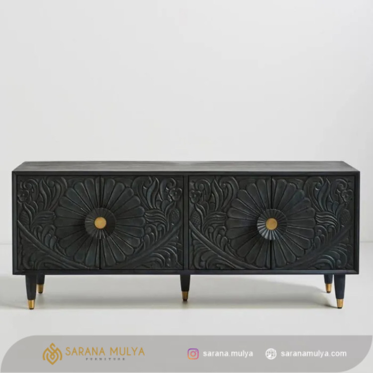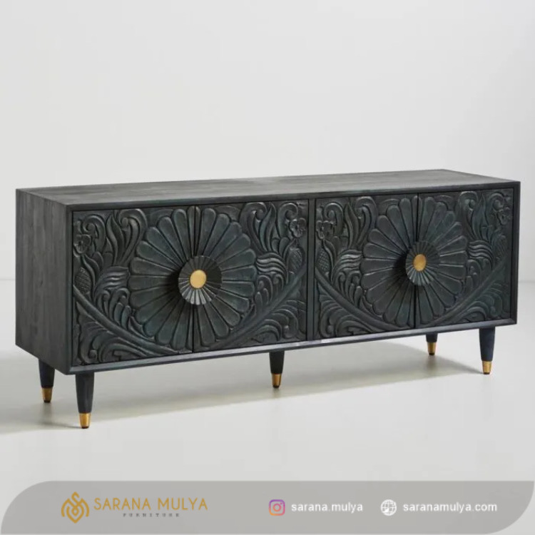 Bufet Kayu Klasik Hitam Ukir Bunga