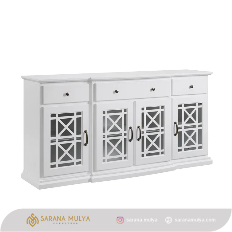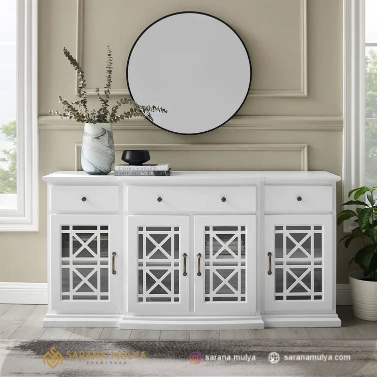 Fitur Bufet Minimalis Kaca Putih Kayu Solid :