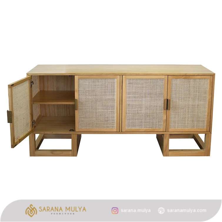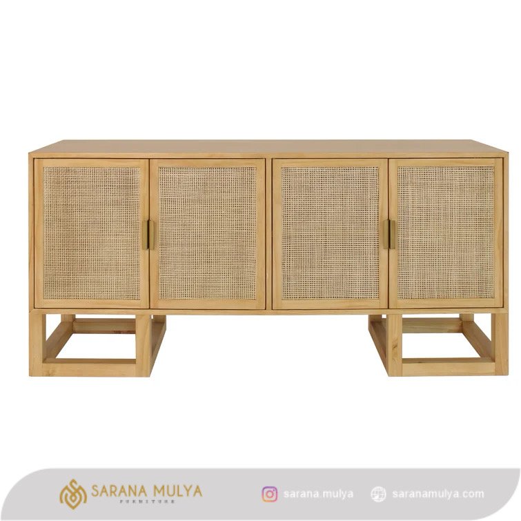 Bufet Minimalis Kayu Jati Anyaman Rotan