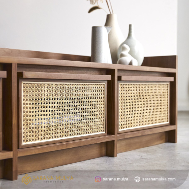 Bufet Minimalis Kayu Jati Laci Rotan
