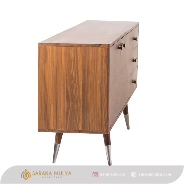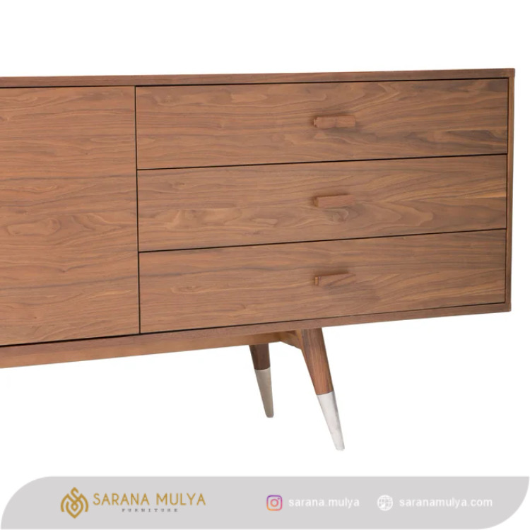 Lengkapi ruang tamu maupun ruang keluarga Anda dengan Bufet Minimalis Modern Kayu Jati. Selain berfungsi untuk menyimpan berbagai barang kesayangan Anda, lemari bufet ini juga bisa dimanfaatkan untuk memajang berbagai hiasan seperti tanaman artifisial maupun bingkai foto yang dapat mempercantik hunian. Bufet minimalis ini menyediakan dari 2 buah pintu dengan 2 rak di dalamnya dan 3 buah laci penyimpanan. Terbuat dari material kayu jati solid pilihan yang berkualitas kombinasi kaki besi dengan struktur yang kuat dan kokoh, menjadikan lemari bufet minimalis ini tahan lama untuk digunakan.
