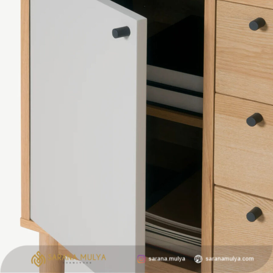 - Terdapat 3 pintu dan 3 laci penyimpanan