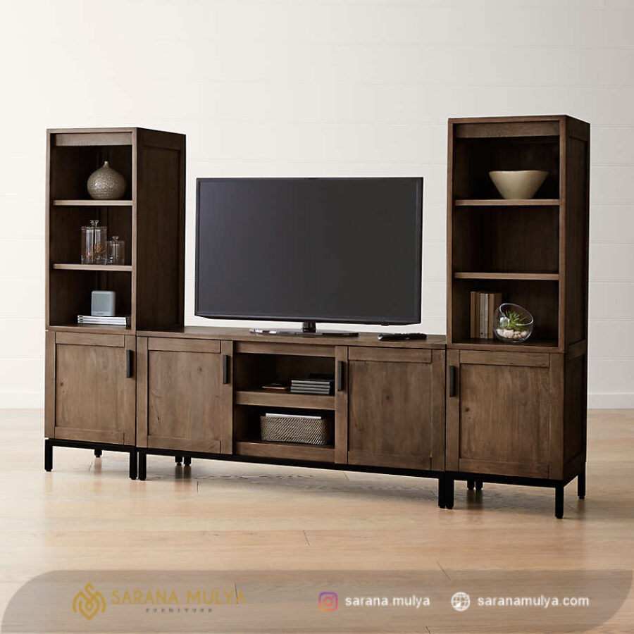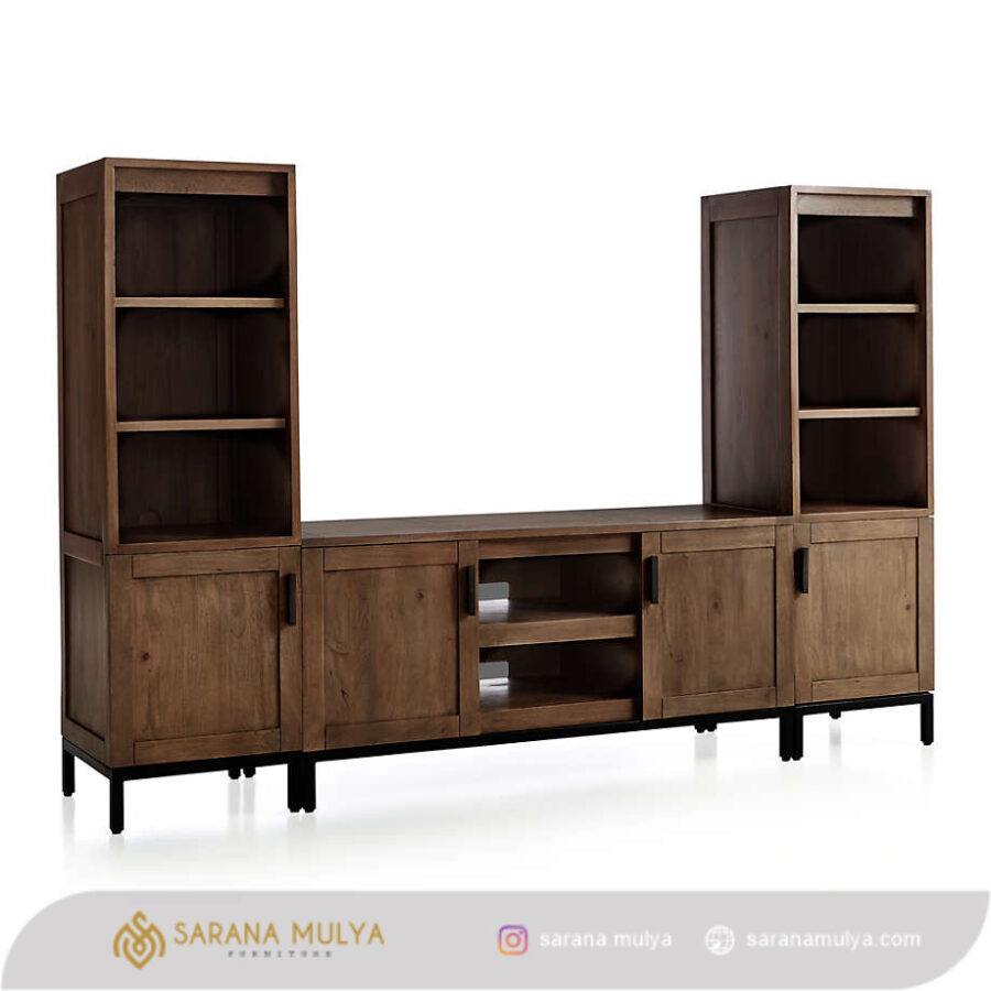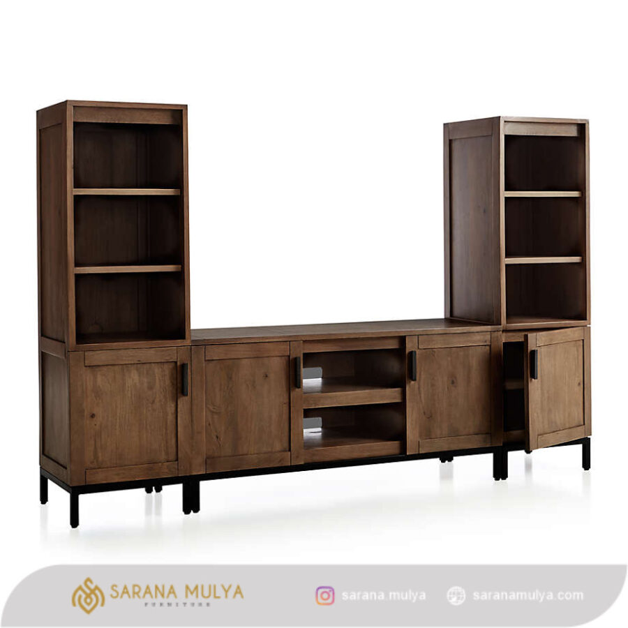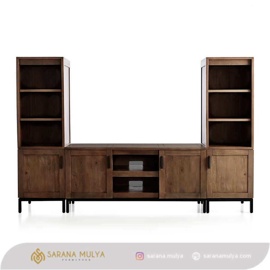 Ruang tamu atau ruang keluarga sering kali membutuhkan perhatian ekstra dalam pengisian furnitur. Tidak hanya indah dipandang mata, furnitur juga harus memiliki fungsi penyimpanan yang maksimal. Seperti Bufet Tv Kaki Besi Minimalis Jati ini untuk tempat menaruh berbagai perlengkapan hiburan mulai dari televisi, DVD player, game konsol, koleksi buku hingga pajangan. Bufet Tv ini menyediakan sejumlah rak terbuka dan pintu swing untuk menyimpan barang agar tertata rapi. Bermaterial kayu jati solid berkualitas kombinasi besi dengan rangka yang kuat dan kokoh. Hadir dengan nuansa cokelat yang membawa kesan natural di ruangan. Bufet Tv Kaki Besi Minimalis Jati cocok untuk menemani momen berkumpul bersama keluarga menjadi lebih menyenangkan.