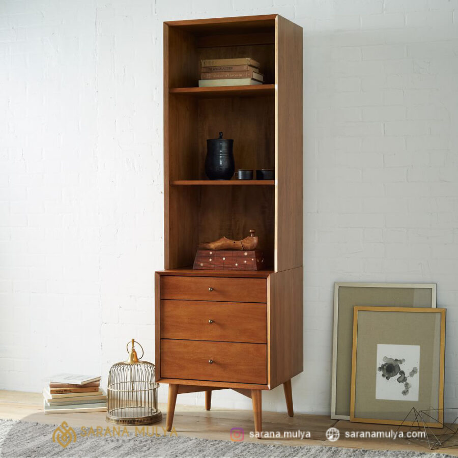 • Terdapat penyimpanan pintu swing, laci dan rak terbuka