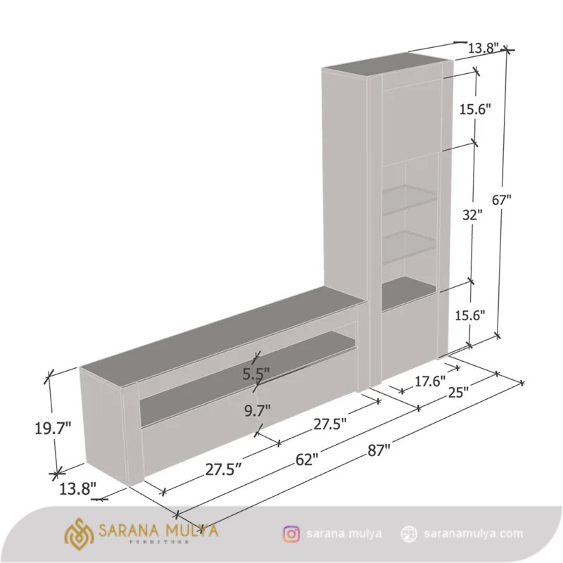 Spesifikasi Bufet Tv Kayu Kombinasi Minimalis Modern :