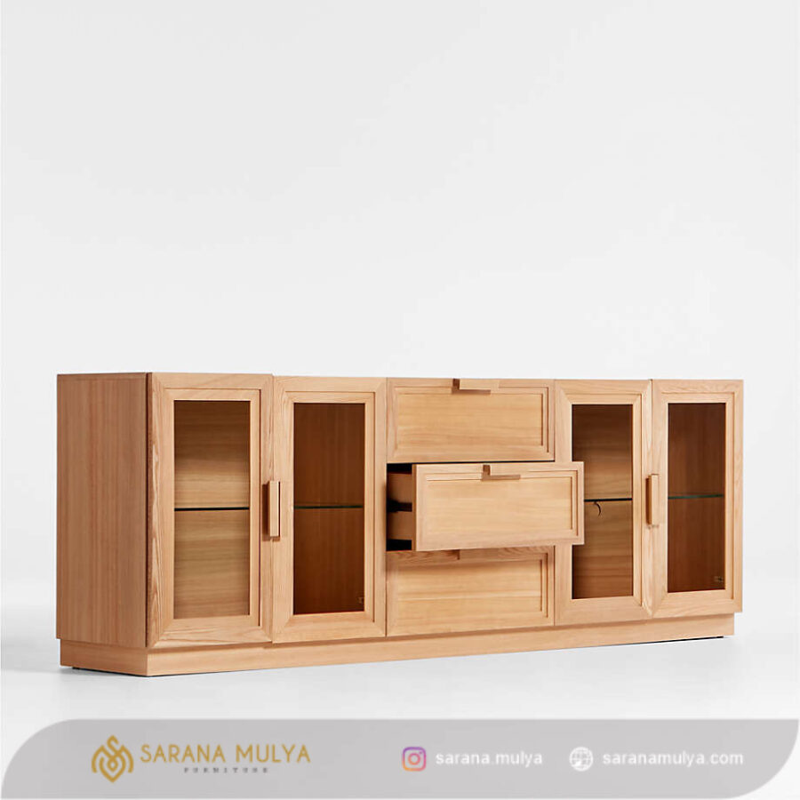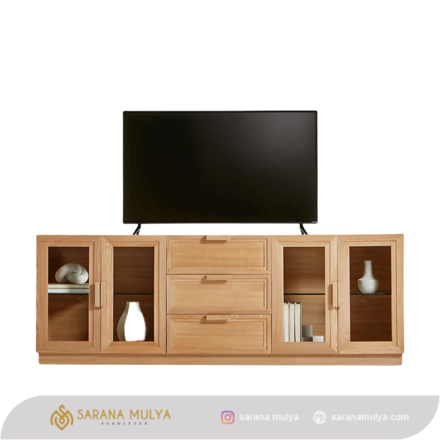Percantik ruang keluarga Anda dengan menghadirkan Bufet Tv Laci Kaca Kayu Jati. Memiliki desain modern dan elegan sehingga dapat memperindah tampilan ruangan Anda. Selain itu, rak TV ini juga dibuat dari material Terbuat dari material kayu jati solid dengan pintu kaca berkualitas yang kuat sehingga menghasilkan konstruksi kokoh untuk dapat menahan beban TV dengan baik. Dilengkapi 3 laci dan rak penyimpanan untuk menyimpan berbagai barang-barang Anda seperti DVD player, game konsol, remote, hingga buku dan majalah.