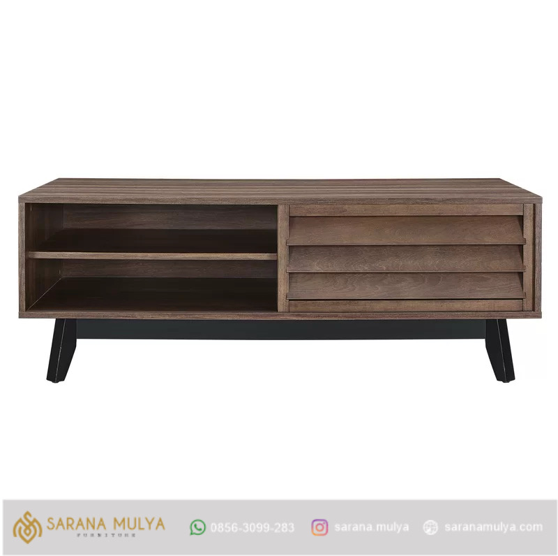 Coffee Table Meja Tamu Minimalis Memberikan waktu berkumpul yang berkualitas dengan saudara atau keluarga menjadi lebih maksimal di ruangan Anda, Terbuat dari kayu jati, meja kopi ini menampilkan desain retro yang di aplikasiakan dengan finishing semi glossy warna putih dan hitam di bagian kaki kaki. desain unik dengan 2 rak terbuka dan 1 pintu memudahkan untuk meletakkan remot TV, buku atau majalah favorit anda, Dengan adanya meja tamu, Anda juga bisa dengan mudah menyajikan hidangan bagi tamu yang berkunjung.