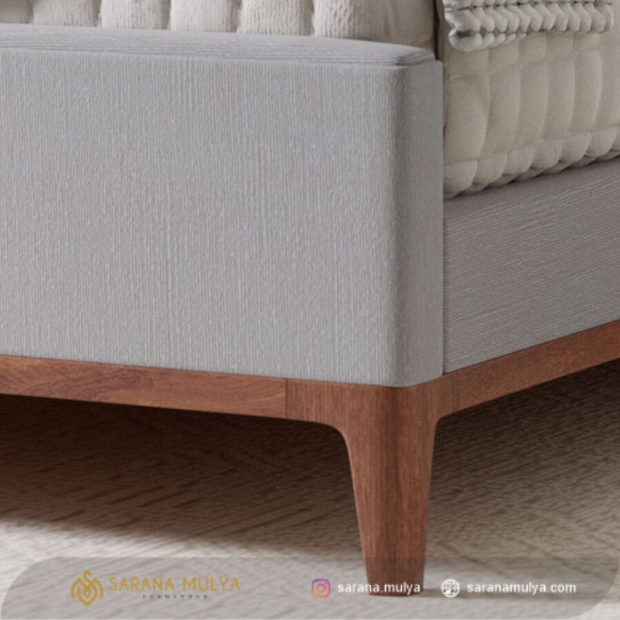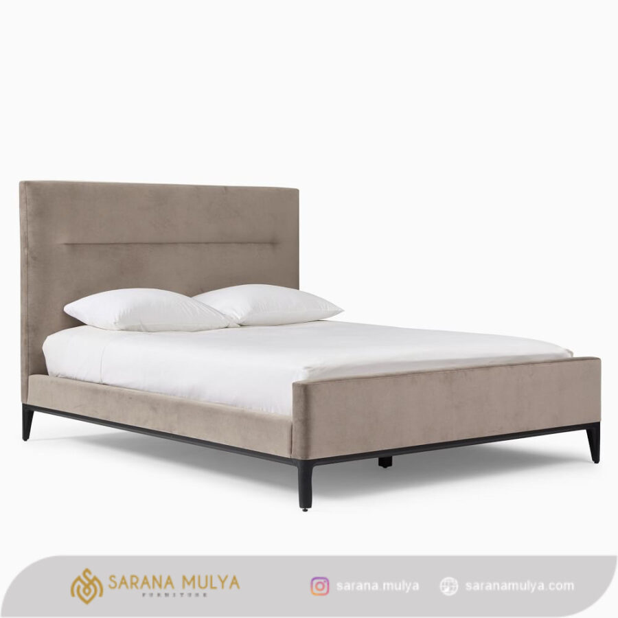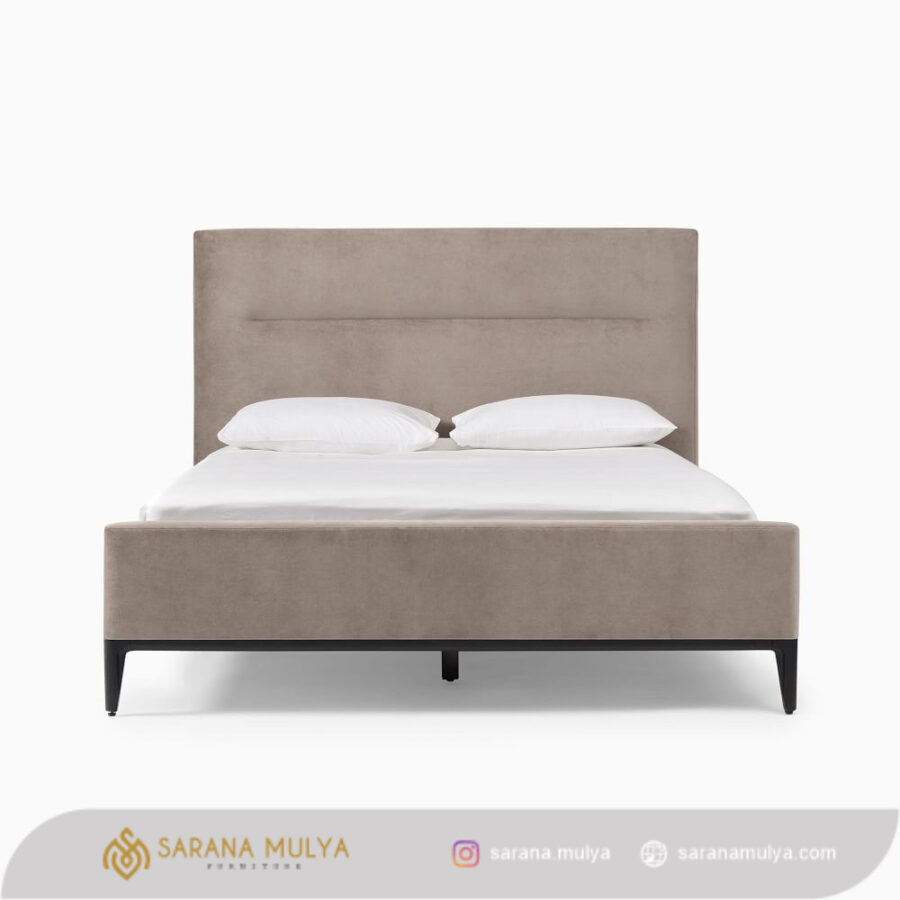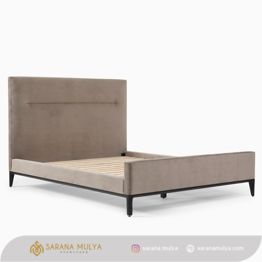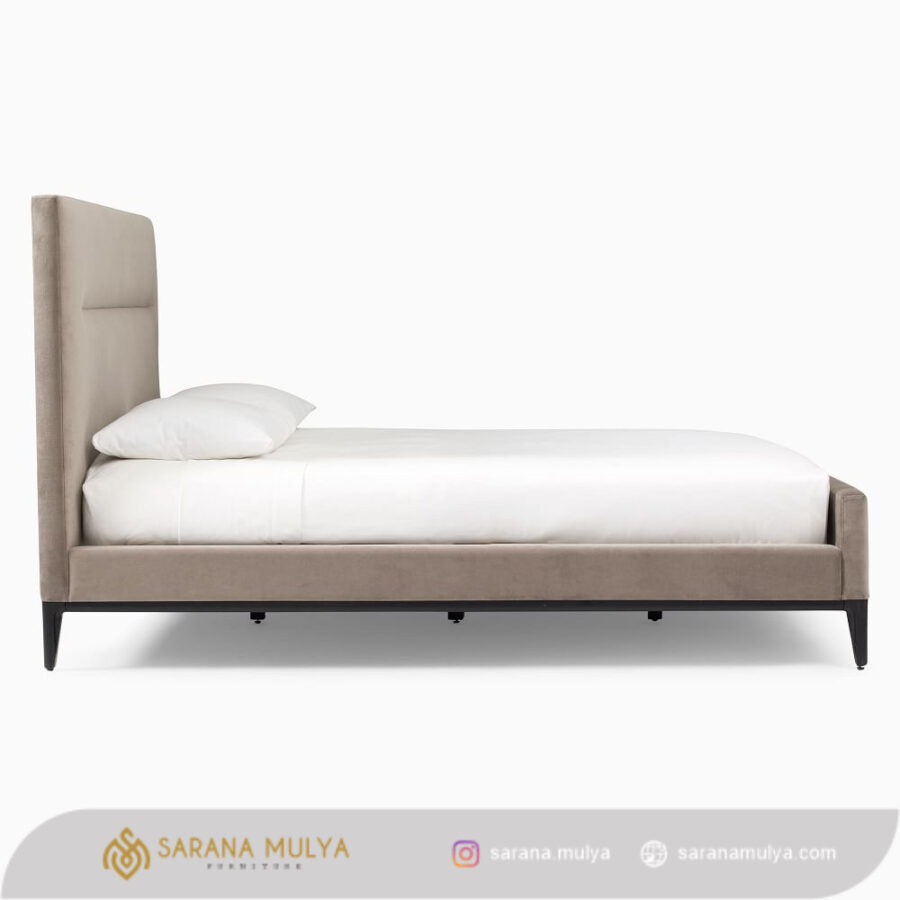Dipan Jati Solid Mewah Minimalis menjadikan Tampilan kamar tidur yang menarik dan menawan untuk Anda. Hadir dengan desain modern minimalis yang dirancang menggunakan material rangka kayu jati solid berlapis kain fabric berkualitas dengan konstruksi kuat, kokoh dan juga tahan lama. Ini merupakan pilihan ideal untuk menemani waktu tidur Anda dan keluarga tercinta. Selain memenuhi nilai fungsinya, ranjang tidur ini juga dapat meningkatkan tampilan dekorasi ruang tidur berkat kain premium yang menawan.