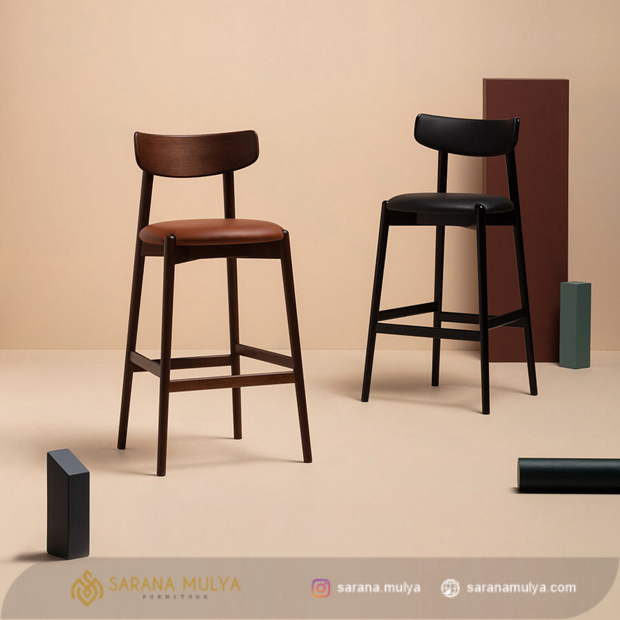 Jual Kursi Bar Ropan Terbaru Minimalis hadir untuk melengkapi keindahan dan fungsi ruangan Anda. Kursi ini bisa dipasangkan dengan bar bernunsa modern dan minimalis. Desainnya yang trendy juga akan menambah daya tarik pada sudut rumah Anda. Selain itu, kursi bar ini cocok juga dipakai untuk kebutuhan komersil seperti kafe, restoran, ataupun kedai kopi. Terbuat dari material kayu sungkai berkualitas yang kuat, kokoh dan tentunya tahan lama, dudukan dan sandarannya juga terdapat busa empuk berlapis kain oscar untuk memaksimalkan kenyaman saat duduk dalam waktu yang lama.