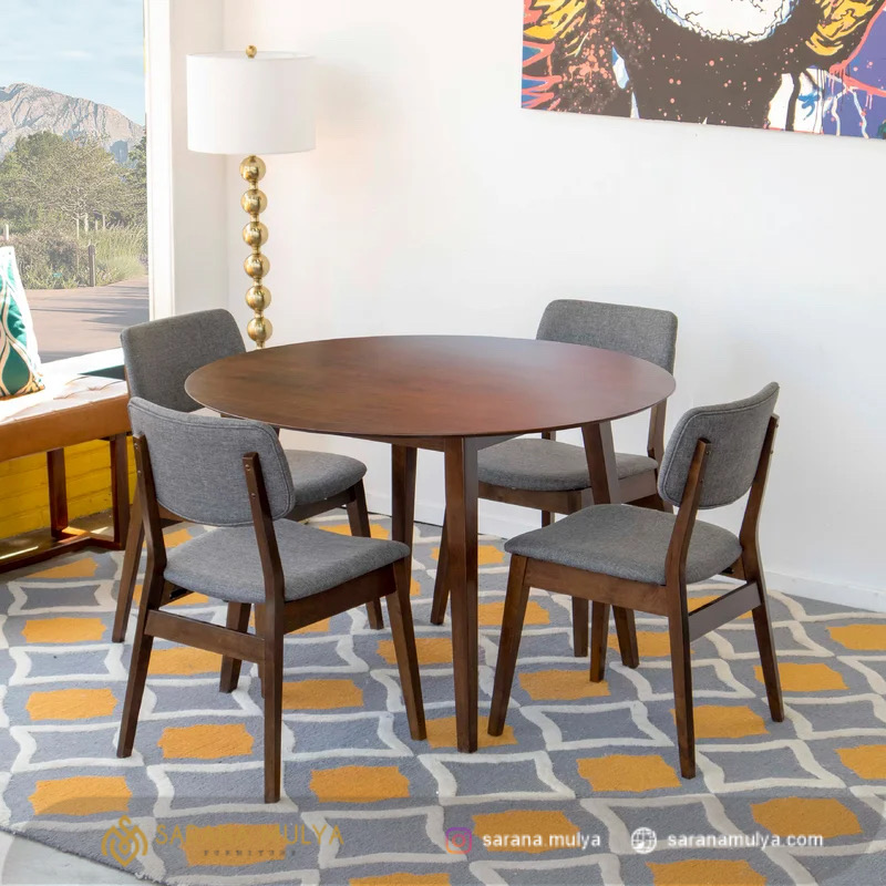 Jual Set Kursi Cafe Minimalis Jati ini dapat menjadi salah satu pilihan yang tepat untuk mengisi kebutuhan usaha Anda seperti kafe, restoran maupun hotel. Terdiri dari 1 meja bulat dan 4 kursi bergaya minimalis modern, set kursi cafe ini juga bisa digunakan sebagai meja makan di rumah Ada. Meja nya sendiri dibuat dari material kayu jati solid, sedangkan kursi nya dilengkapi busa berlapis kain fabric pada dudukan dan sandarannya, set kursi cafe ini tentunya hadir dengan konstruksi kuat dan kokoh agar nyaman saat digunakan. Segera dapatkan produk ini dengan rangkaian penawaran menarik dari saranamulya.com