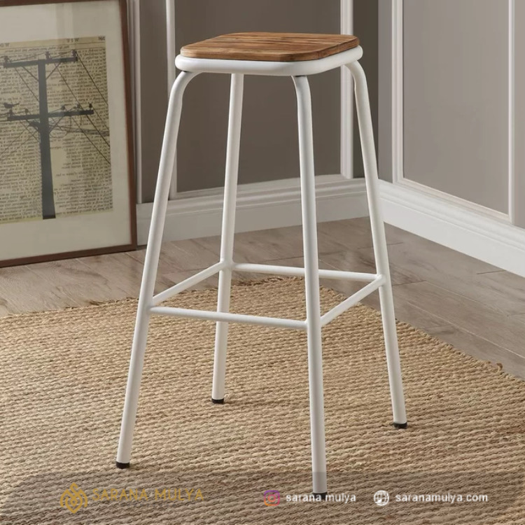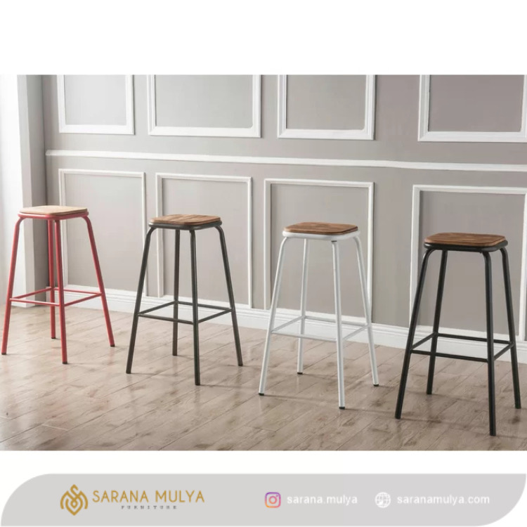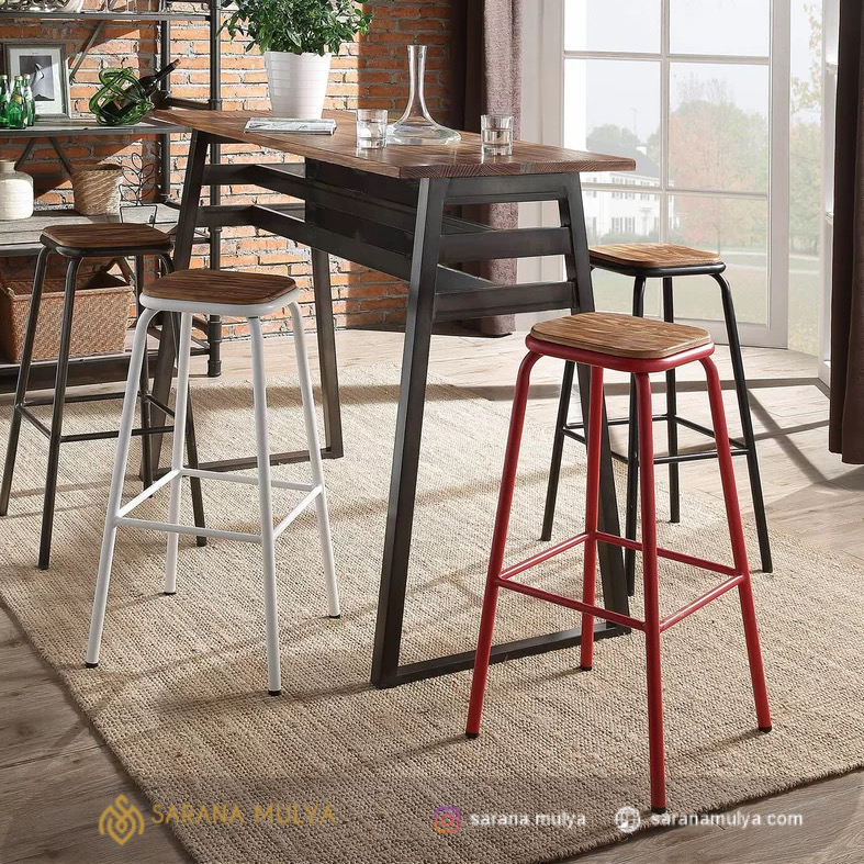 Isi interior ruang makan di rumah ataupun tempat usaha Anda seperti cafe, bar, atau hotel dengan Jual Set Meja Bar Besi Minimalis yang akan menambah kemewahan. Set meja bar ini memiliki keunikan dan estetika yang lebih tinggi dengan gaya industrial yang lebih modern. Terdiri dari 1 meja bar dengan kontruksi yang kuat dan kokoh dan 4 buah kursi bar bergaya senada dengan terdapatnya pijakan pada bagian kaki yang dapat menopang kaki agar lebih nyaman. Perpaduan material besi dan kayu jati solid berkualitas menjadi bahan dasar pembuatan set meja bar ini agar dapat digunakan dalam jangka waktu yang lama. Jual Set Meja Bar Besi Minimalis ini hadir dalam nuansa warna hitam yang mudah dipadu padankan dengan aksesoris dan furnitur lainnya.