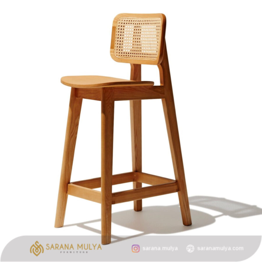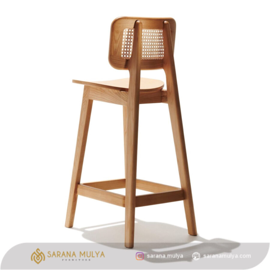 Kursi Bar Kayu Natural Shiro Anyaman Rotan