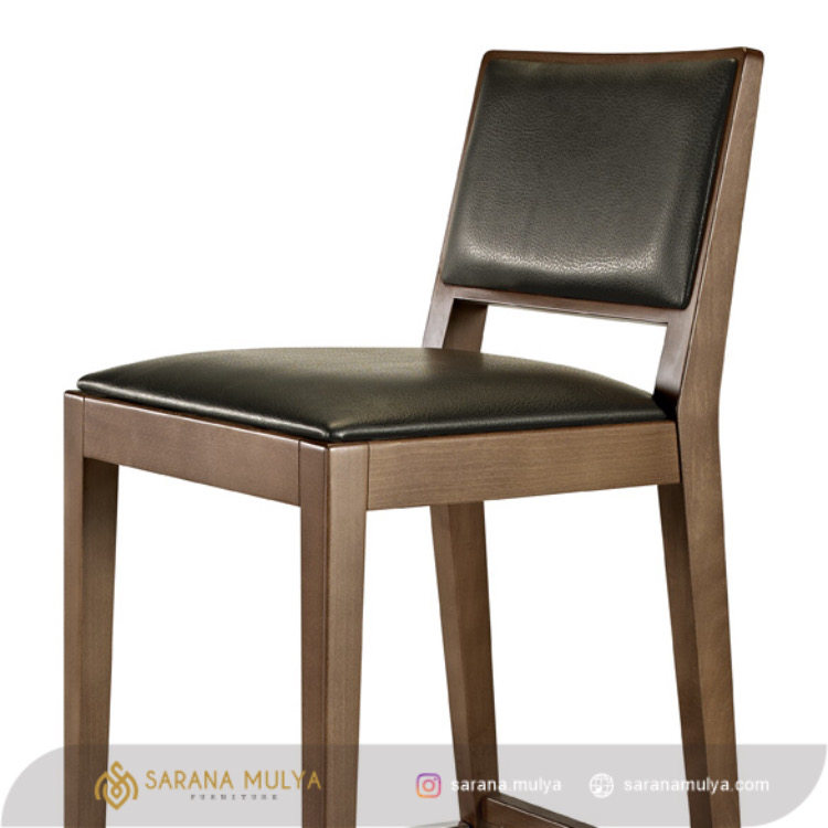 Kursi Bar Murah Minimalis Kayu Jati menghadirkan kesan minimalis dan modern pada hunian ataupun tempat komersil Anda seperti cafe, bar, restoran maupun hotel. Dengan desain yang menawan kursi bar ini cocok untuk dipadukan dengan ragam dekorasi sesuai keinginan Anda. Terbuat dari material rangka kayu jati solid berkualitas yang kuat, kokoh dan tentunya tahan lama, dudukan dan sandarannya juga terdapat busa empuk berlapis kain oscar. Kursi bar tinggi ini dilengkapi dengan pijakan kaki untuk memaksimalkan kenyaman saat diduduki dalam waktu yang lama.
