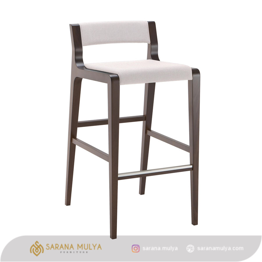 Kursi Bar Terbaru Kayu Jati Minimalis Modern merupakan pelengkap yang sempurna untuk kebutuhan komersil seperti kafe, bar, restoran, atau kedai kopi. Hadir dengan desain minimalis modern dilengkapi sandaran punggung dan penopang kaki untuk menambah kenyamanan ketika Anda duduk. tidak hanya untuk kebutuhan komersil kursi bar ini juga Ideal untuk dipadukan dengan meja bar di hunian Anda. Terbuat dari material kayu jati solid pilihan yang berkualitas, kuat dan kokoh dengan finishing glossy warna dark brown yang halus. Terdapat juga busa empuk berlapis kain oscar pada sandaran dan dudukannya untuk memberikan kenyamanan yang optimal.