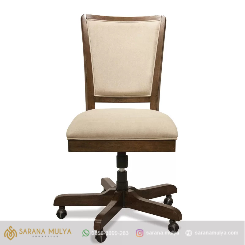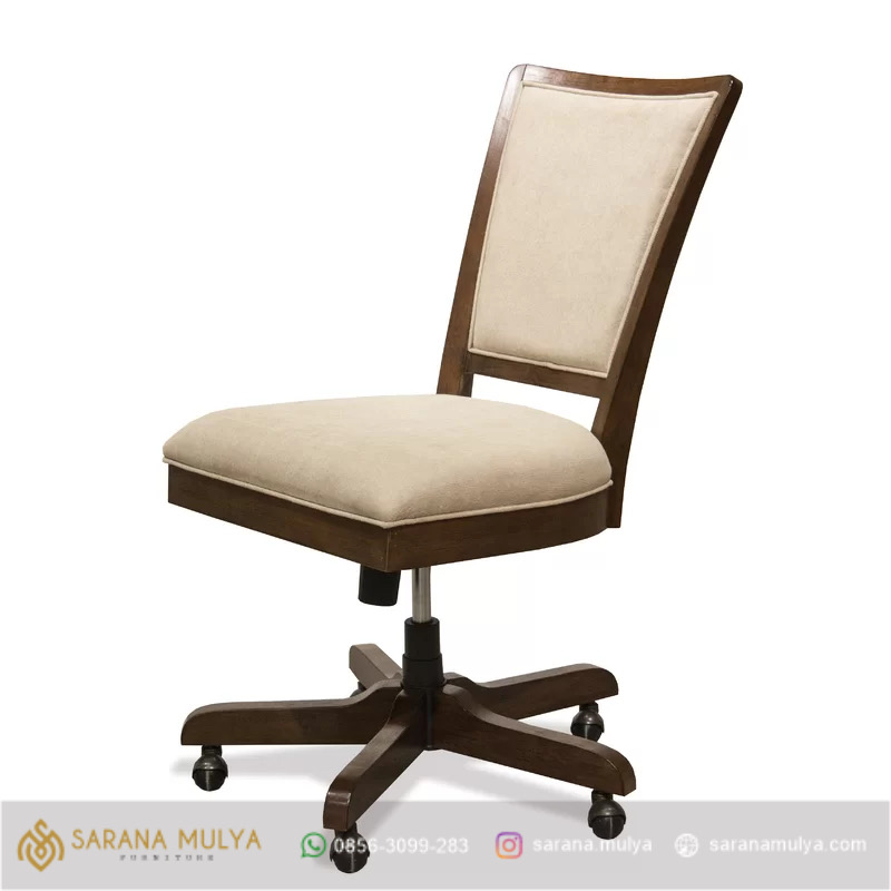 Pastikan Anda tetap nyaman bekerja berjam-jam dengan Kursi Kantor Minimalis Jati. kursi kerja dengan kenyamanan sempurna yang cocok untuk Anda. memiliki sandaran yang mampu menopang tubuh dengan lebih rileks dan nyaman, didukung juga dengan desainnya yang sederhana namun tetap elegan untuk mengisi ruang kerja kantor Anda. Produk kursi untuk kantor ini di buat dari material kayu jati solid dengan berlapis fabric, foam pada dudukan dan sandaran yang tentunya berkualitas dan tahan lama, memilik tuas di bawah dudukan yang membuat kursi kantor ini sangat mudah di atur ketinggiannya.
