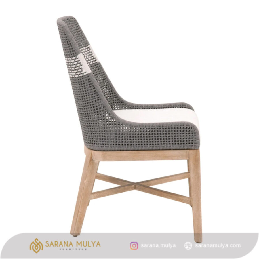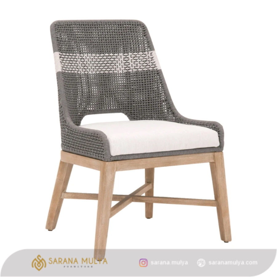 Pastikan makan malam bersama keluarga di ruang makan berlangsung lebih menyenangkan dengan Kursi Makan Mewah Anyaman Tali Rotan. Hadir dengan desain bergaya modern dengan rangka yang kuat. Dibuat menggunakan material kayu jati solid berkualitas kombinasi alumunium dan finishing semi glossy warna natural kayu. Dilengkapi juga dengan busa berlapis kain fabric pada dudukan dan anyaman tali rotan pada sandaran sehingga nyaman digunakan saat menyantap makan. Anda dapat memadukan kursi makan kayu ini dengan Meja Makan yang bernuansa minimalis modern ataupun scandinavian.