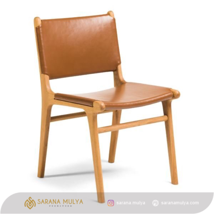 Pastikan makan malam bersama keluarga di ruang makan berlangsung lebih menyenangkan dengan Kursi Makan Minimalis Kulit Asli. Hadir dengan desain bergaya modern dengan rangka yang kuat. Dibuat menggunakan material kayu jati solid berkualitas dan finishing semi glossy warna natural kayu. Dilengkapi juga dengan kulit asli pada dudukan dan sandaran sehingga nyaman digunakan saat menyantap makan. Anda dapat memadukan kursi makan kulit asli ini dengan Meja Makan yang bernuansa minimalis modern ataupun scandinavian.