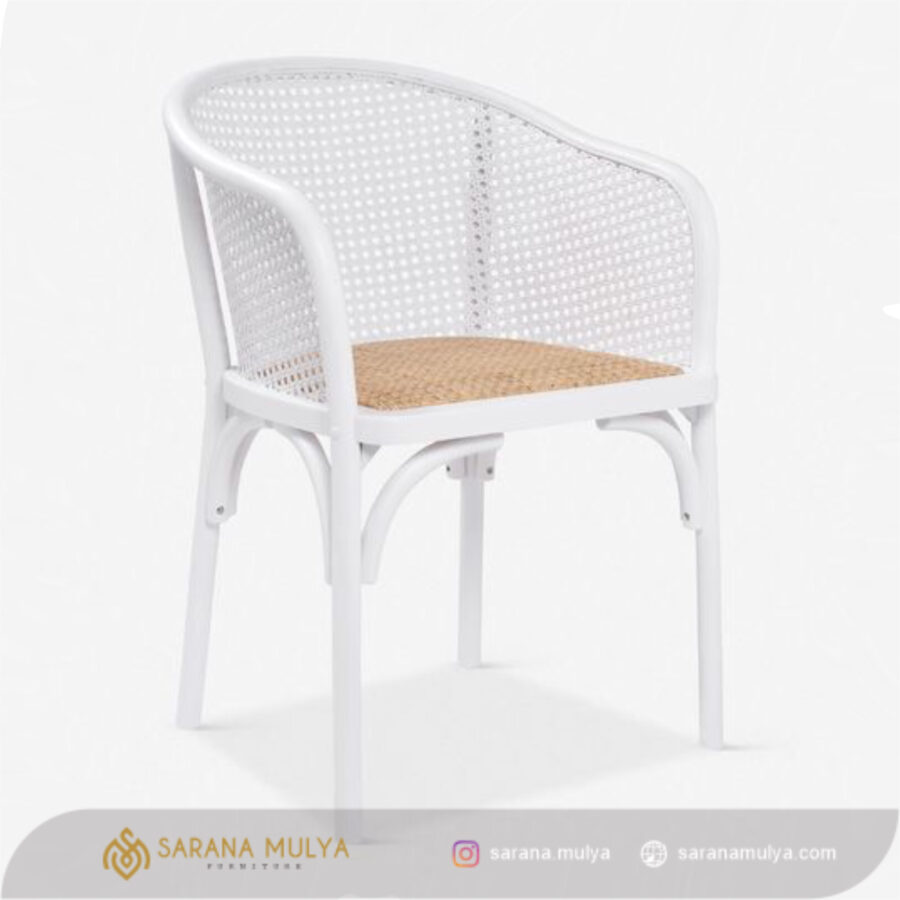 Spesifikasi Kursi Makan Putih Anyaman Rotan Minimalis :