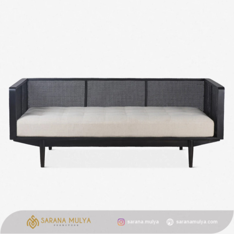 Tambahkan kenyamanan di hunian Anda dengan menghadirkan Kursi Sofa Tamu Minimalis Terbaru Carto. Sofa ini memiliki desain modern minimalis dengan warna hitam yang menarik. Cocok untuk ditempatkan di ruang tamu ataupun ruang keluarga untuk menghangatkan suasana berkumpul bersama sahabat dan keluarga Anda. Terbuat dari rangka kayu jati solid pilihan kombinasi anyaman rotan alami yang dirancang dengan memiliki konstruksi kokoh, kuat dan tentunya tahan lama. Kursi sofa 3 dudukan ini juga dilengkapi dengan bantalan tebal berlapis kain fabric yang berkualitas sehingga dapat memberikan kenyamanan yang maksimal untuk Anda.