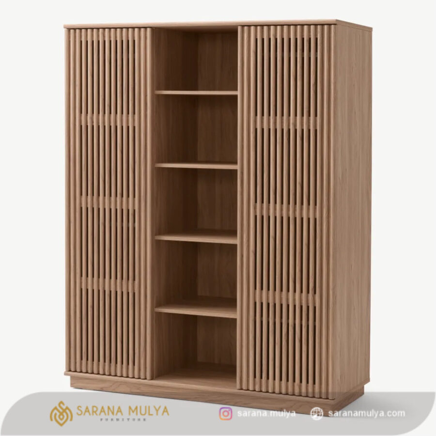 Lemari Baju Pintu Geser Kayu Jati solusi untuk menyimpan koleksi pakaian kesayangan Anda. Memiliki desain modern dan minimalis dengan hasil akhir warna brown teak yang elegan membuatnya ideal untuk menghiasi kamar tidur. Selain itu, lemari ini pun terbuat dari material kayu jati solid premium sehingga menghasilkan kualitas rangka yang kuat, kokoh, dan juga awet untuk Anda gunakan dalam jangka waktu yang lama. Dilengkapi dengan 2 pintu geser, beberapa rak dan juga terdapat gantungan pakaian di dalam lemari untuk memaksimalkan penyimpanan.