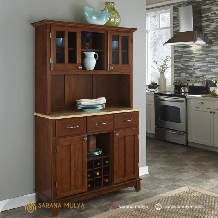 Bagi Anda penggemar berbagai jenis ornamen atau barang-barang antik, Lemari Hias Kayu Jati Minimalis dapat menjadi pilihan yang tepat untuk memajang koleksi Anda. Lemari pajangan ini memiliki berbagai penyimpanan untuk memajang berbagai dekorasi, foto atau penghargaan yang Anda miliki. Selain menambah kemewahan dan nilai estetika pada ruangan, penggunaan lemari pajangan ini juga dapat memberikan kesan luas pada interior minimalis. Terbuat dari material kayu jati solid berkualitas yang konstruksinya sendiri dibuat presisi dan stabil dengan hasil akhir finishing warna walnut yang akan menambah kehangatan di ruangan Anda.
