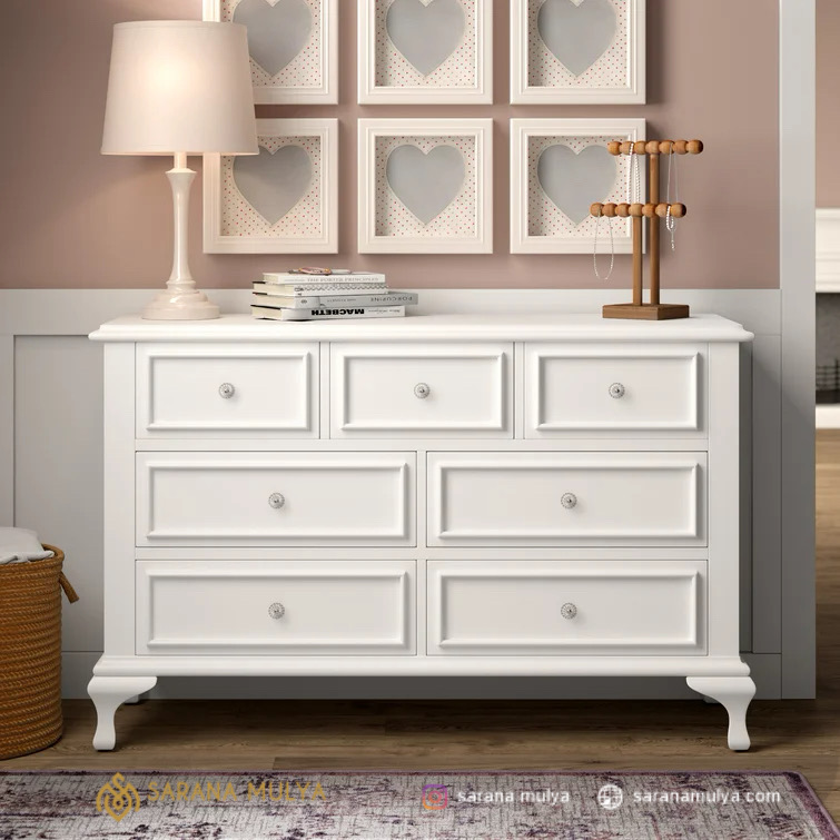 Padupadankan Lemari Laci Kayu Putih Klasik Minimalis ini dengan furnitur di Kamar Tidur yang selaras seperti Tempat Tidur, Meja Rias, Nakas maupun furnitur di Ruang Keluarga, dan itu semua bisa Anda dapatkan di saranamulya.com.