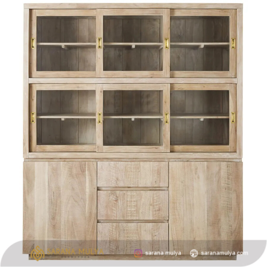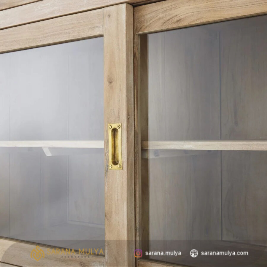 saranamulya.com menghadirkan ragam furnitur untuk melengkapi rumah agar semakin nyaman. Bagi Anda yang mencari tempat untuk memajang barang-barang koleksi kesayangan Anda, Lemari Pajangan Jati Natural Minimalis Terbaru ini bisa menjadi pilihan yang tepat. Memiliki laci penyimpanan, 4 rak tingkat dan pintu sliding kaca agar barang-barang tetap tersimpan dengan baik namun terpajang dengan cantik. Terbuat dari material kayu jati solid berkualitas dengan rancangan rangka yang kuat menjadikan Lemari hias ini dapat berdiri dengan stabil. Hasil akhir finishing Doff dengan warna natural yang akan memberi kehangatan di ruangan Anda. Proses pembuatan lemari pajangan ini telah melalui uji-fisik, konstruksi dan keamanan untuk memastikan keamanan dan tahan lama ketika digunakan.