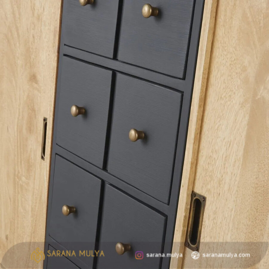 saranamulya.com menghadirkan ragam furnitur untuk melengkapi rumah agar semakin nyaman. Bagi Anda yang mencari tempat untuk memajang barang-barang koleksi kesayangan Anda, Lemari Pajangan Kayu Jati Minimalis Modern ini bisa menjadi pilihan yang tepat. Memiliki laci penyimpanan, 3 tingkat rak dan pintu sliding kaca agar barang-barang tetap tersimpan dengan baik namun terpajang dengan cantik. Terbuat dari material kayu jati solid berkualitas dengan rancangan rangka yang kuat menjadikan Lemari hias ini dapat berdiri dengan stabil. Hasil akhir finishing doff dengan warna hitam dan natural yang akan memberi kehangatan di ruangan Anda. Proses pembuatan lemari pajangan ini telah melalui uji-fisik, konstruksi dan keamanan untuk memastikan keamanan dan tahan lama ketika digunakan.