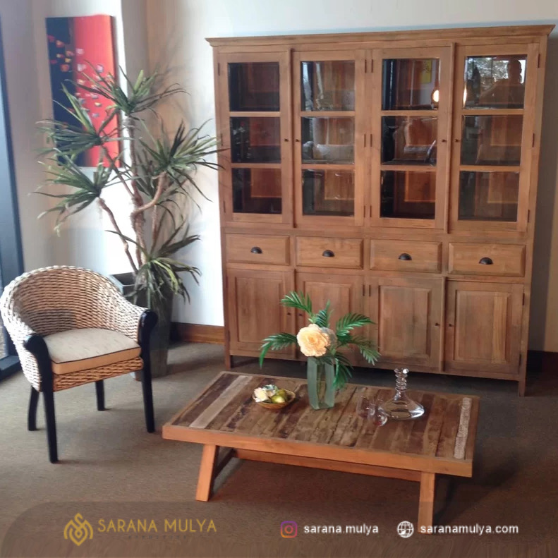 Kami juga memiliki banyak produk yang cocok untuk dipadupadankan dengan Lemari Pajangan Minimalis Kayu Jati 4 Pintu ini seperti Kursi Tamu Sofa, Kursi Malas maupun furnitur Ruang Tamu lainnya.