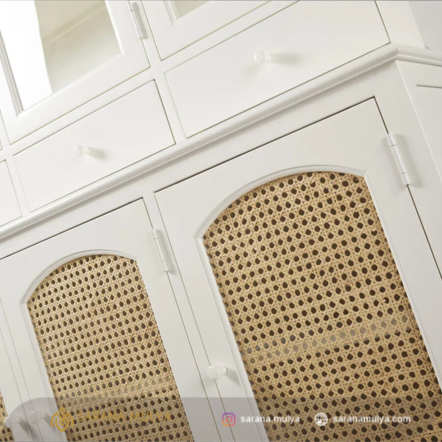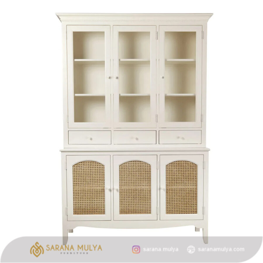 saranamulya.com menghadirkan ragam furnitur untuk melengkapi rumah agar semakin nyaman. Bagi Anda yang mencari tempat untuk memajang barang-barang koleksi kesayangan Anda, Lemari Pajangan Rotan Alami Minimalis Kayu ini bisa menjadi pilihan yang tepat. Memiliki laci penyimpanan, 3 rak dan pintu kaca agar barang-barang tetap tersimpan dengan baik namun terpajang dengan cantik. Terbuat dari material kayu mahoni solid berkualitas kombinasi rotan alami dengan rancangan rangka yang kuat menjadikan Lemari hias ini dapat berdiri dengan stabil. Hasil akhir finishing semi glossy dengan warna putih yang akan memberi kemewahan di ruangan Anda. Proses pembuatan lemari pajangan ini telah melalui uji-fisik, konstruksi dan keamanan untuk memastikan keamanan dan tahan lama ketika digunakan.