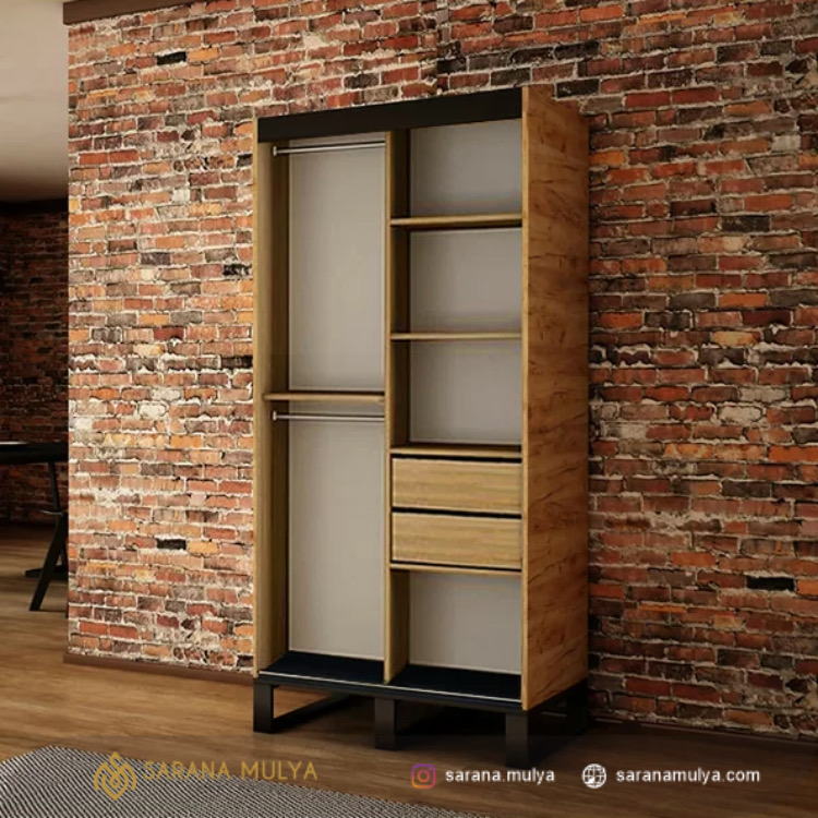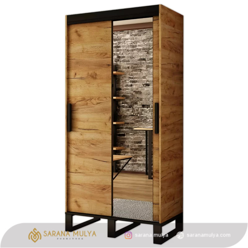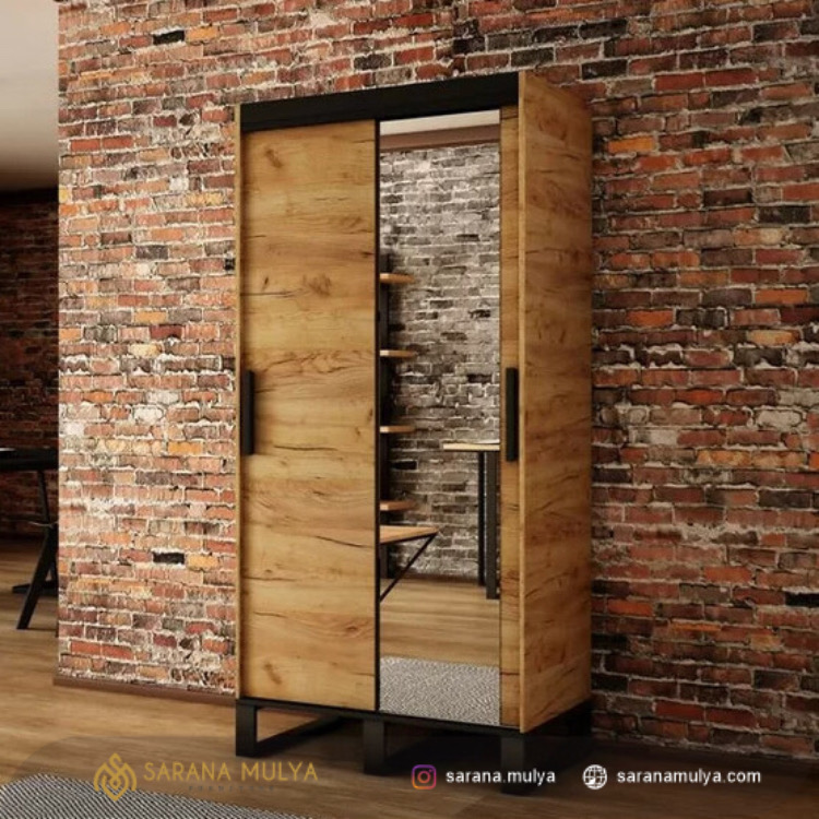 Fitur Lemari Pakaian Industrial 2 Pintu Jati :