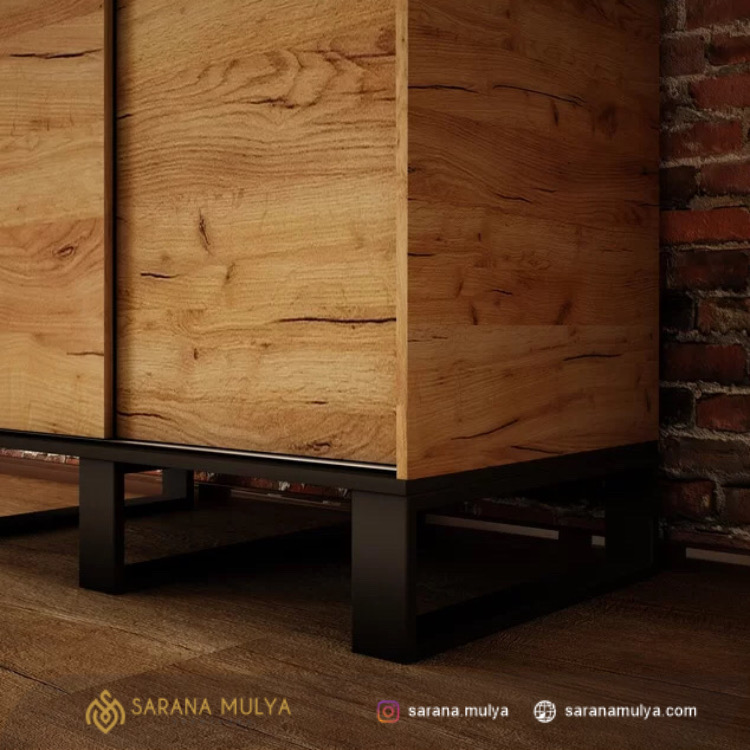 Lemari Pakaian Industrial 2 Pintu Jati ini cocok di padankan dengan tipe furnitur lainnya yang ada di ruang tidur Anda. Meskipun memiliki gaya yang sangat minimalis, lemari pakaian kayu ini memiliki ruang kompartemen yang cukup luas dengan 2 pintu geser yang bisa menghemat ruangan dan gantungan baju, ini juga dibekali cermin pada salah satu pintunya. Dibuat dari material kayu jati solid kombinasi kaki kaki besi yang kokoh dan berkualitas dengan hasil akhir finishing warna yang mewah. Lemari Pakaian 2 Pintu ini hadir dengan desain industrial untuk melengkapi kebutuhan di ruang tidur Anda.