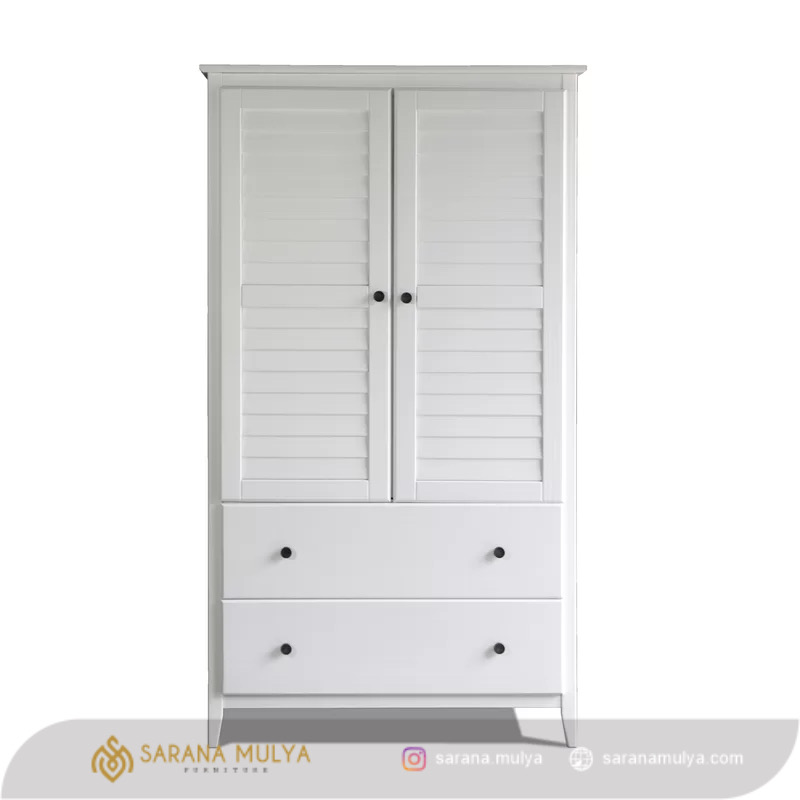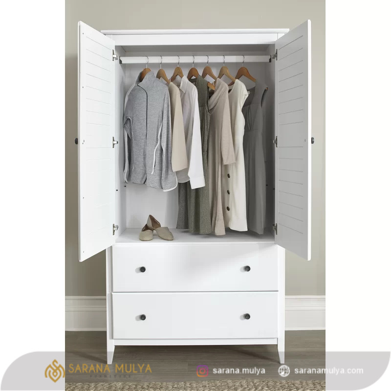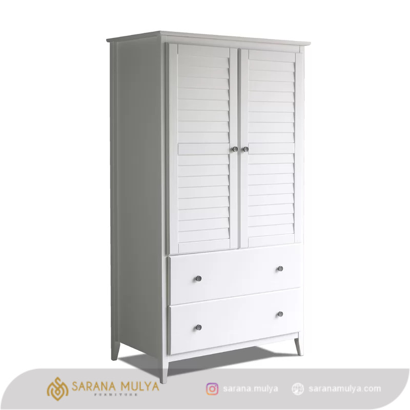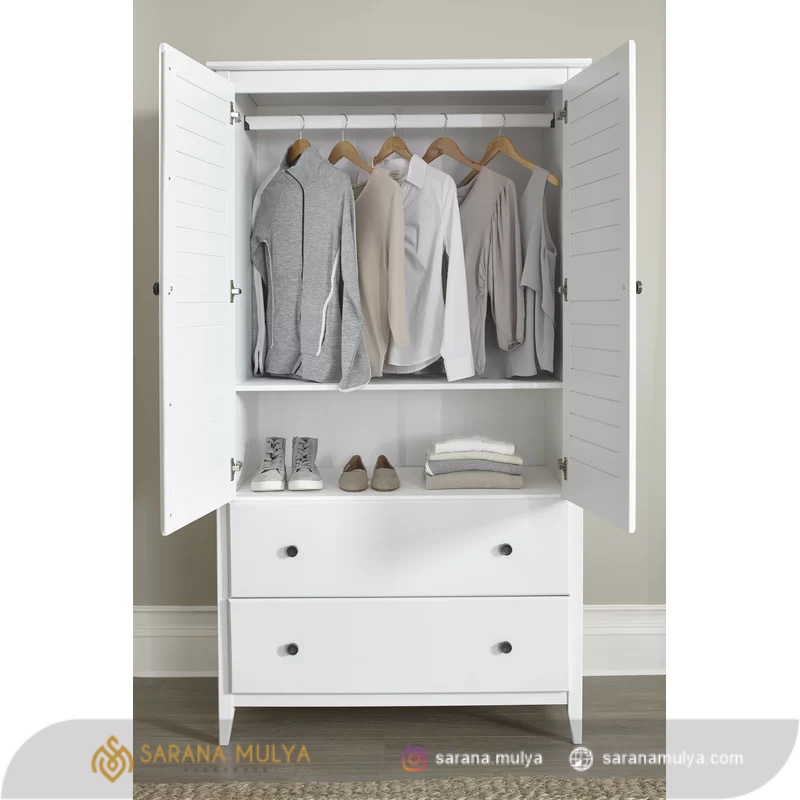 Hadirkan produk Lemari Pakaian Minimalis Laci untuk melengkapi furnitur ruang tidur Anda. Lemari baju ini dapat di andalkan ketahanannya, terbuat dari material kayu mahoni berkualitas dengan konstruksi yang kokoh dengan hasil akhir finishing duco warna putih. Produk lemari 2 pintu ini memiliki beberapa laci, gantungan baju dan kompartemen di dalamnya sehingga dapat memudahkan Anda dalam menyimpan dan mengatur letak baju. Selain itu, Lemari Pakaian Minimalis Laci ini cocok di padankan dengan tipe furnitur lainnya, contohnya Padankan dengan tempat tidur yang berdesain minimalis.