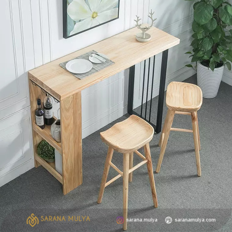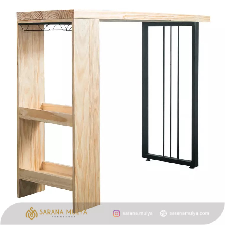 Fitur Meja Bar Kayu Mix Besi Minimalis :