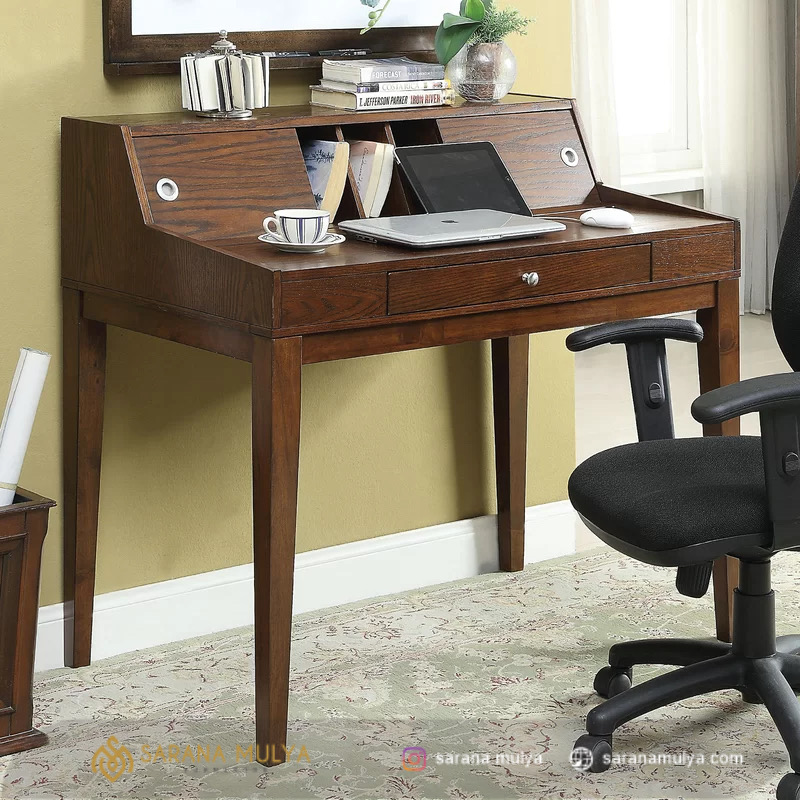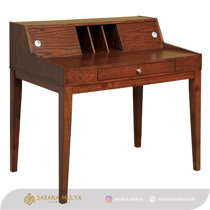 Belajar jika dilakukan dalam durasi yang lama akan terasa lelah jika tidak menggunakan Meja Belajar Kayu Modern Sliding hadir untuk memenuhi kebutuhan si kecil dengan desain minimalis modern yang unik. Permukaan meja belajar ini cukup luas dapat memuat laptop, disertai laci dan pintu sliding dengan berbagai ukuran untuk menyimpan berbagai barang yang dapat mendukung kegiatan belajar. Dibuat dari material kayu jati solid berkualitas dengan hasil akhir warna brown dan finishing semi glossy yang membuat meja belajar anak ini mudah dibersihkan.