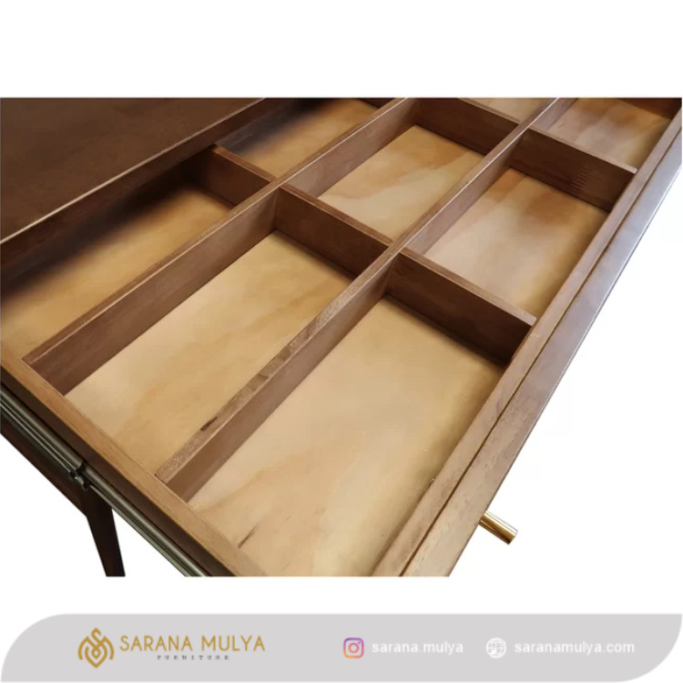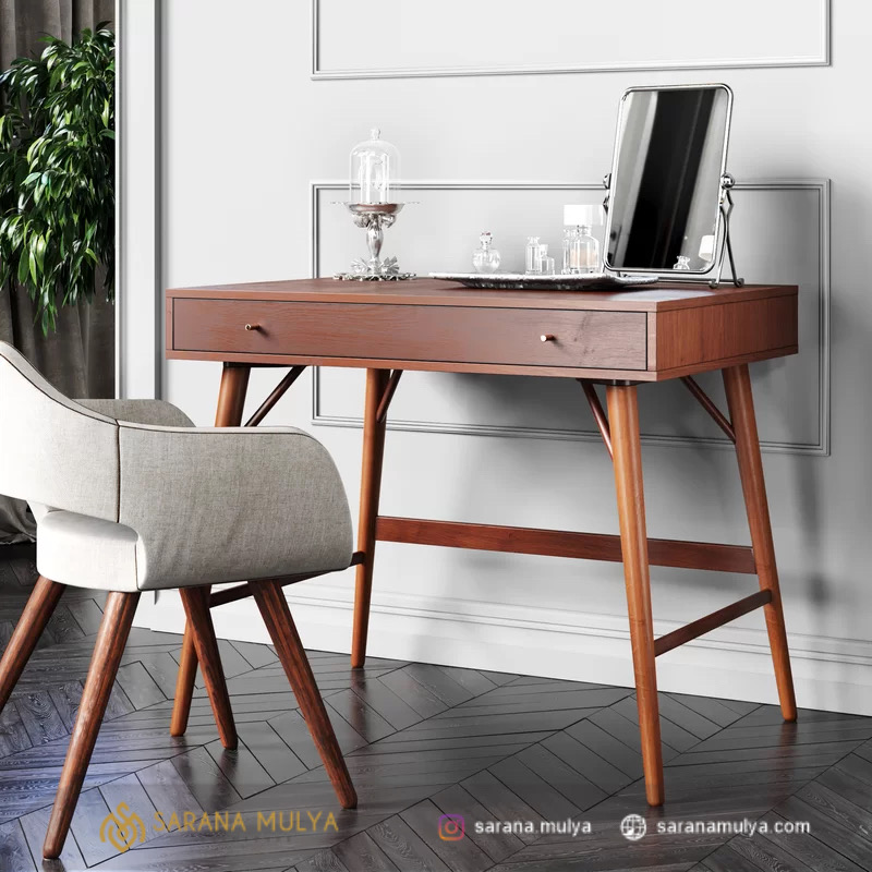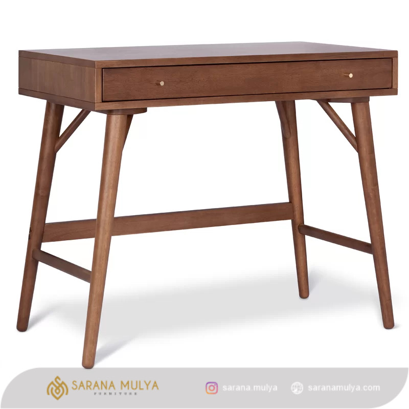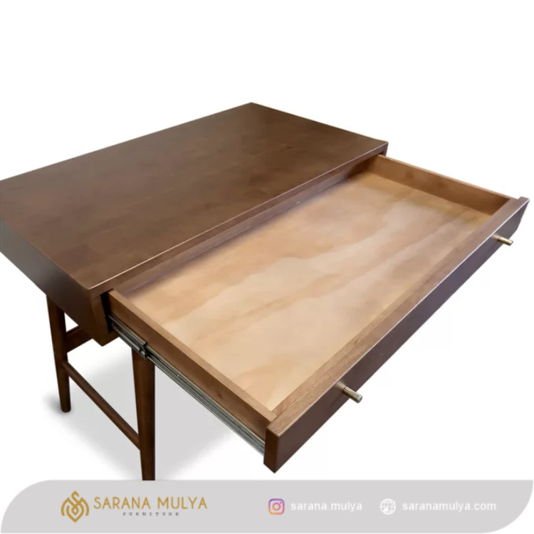 Belajar jika dilakukan dalam durasi yang lama akan terasa lelah jika tidak menggunakan Meja Belajar Minimalis Simple Retro hadir untuk memenuhi kebutuhan si kecil dengan desain minimalis modern yang unik. Permukaan meja belajar ini yang luas dapat memuat laptop maupun komputer, disertai laci untuk menyimpan berbagai barang yang dapat mendukung kegiatan belajar. Dibuat dari material kayu jati solid berkualitas dengan hasil akhir warna brown teak dan finishing semi glossy yang membuat meja belajar anak ini mudah dibersihkan.