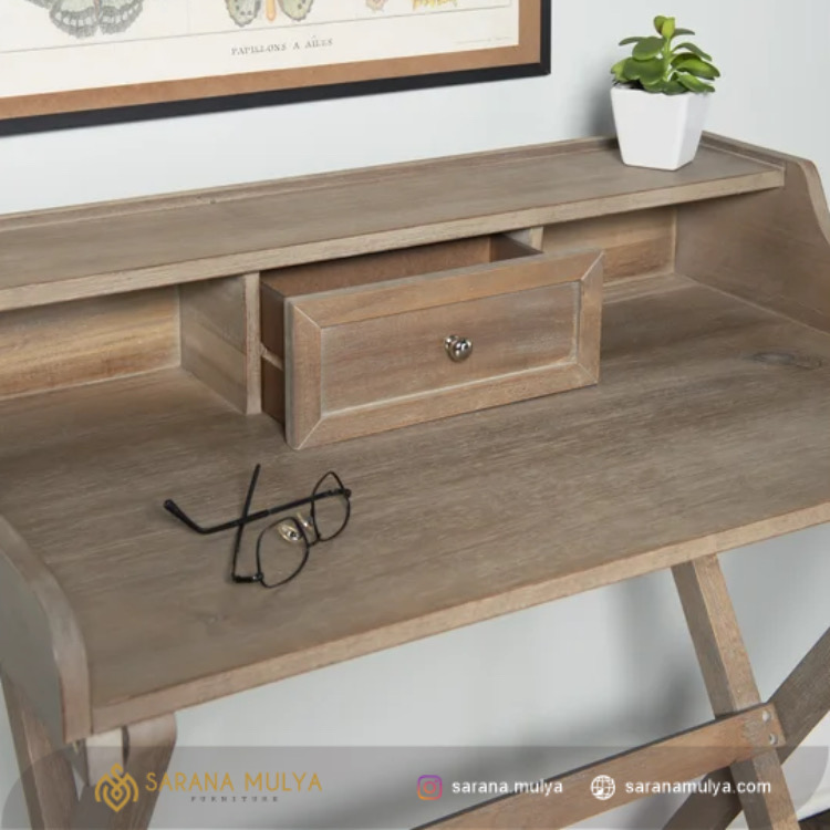 Lengkapi kebutuhan furnitur di ruang tidur anak dengan Meja Belajar Modern Kaki Silang ini yang terbaik untuk anak agar dapat belajar dengan nyaman. Dengan desain minimalis modern Meja belajar ini dilengkapi dengan rak terbuka dan 5 buah laci yang dapat dengan mudah ditarik oleh si kecil untuk meletakkan beberapa barang yang dapat mendukung kegiatan belajar. Selain itu, material meja belajar minimalis ini juga berkualitas, dengan material kayu jati solid kering dan hasil akhir finishing warna natural kayu membuatnya lebih tahan lama dan tidak mudah rusak.