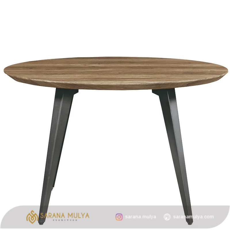 Meja Cafe Besi Bulat Jati Walnut Minimalis dapat menjadi inspirasi menarik untuk dipasang di ruang makan atau kebutuhan komersil seperti kafe, restoran maupun hotel. Meja cafe bulat dengan desain industrial, minimalis modern ini memiliki warna walnut yang netral. Terbuat dari material kayu jati solid berkualitas tinggi dengan rangka kaki besi yang kuat dan stabil saat digunakan. Meja cafe kayu ini pas untuk dipasangkan dengan 4 kursi cafe berwarna senada juga tetap bisa dipadukan dengan perabotan modern lainnya.