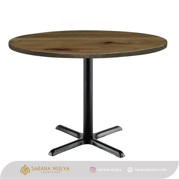 Kami menghadirkan Meja Cafe Bulat Besi Silang Minimalis untuk kenyamanan dan bisa menjadi inspirasi menarik untuk ruang makan maupun kebutuhan tempat usaha seperti kafe, restoran maupun hotel. Meja cafe bergaya industrial minimalis ini terbuat dari material kayu jati solid dan besi yang berkualitas, dengan struktur yang kuat, kokoh dan tentunya lebih tahan lama. Padukan meja cafe kayu ini dengan kursi bergaya senada untuk mendapatkan tampilan yang stylish sekaligus fungsional untuk tempat usaha anda.