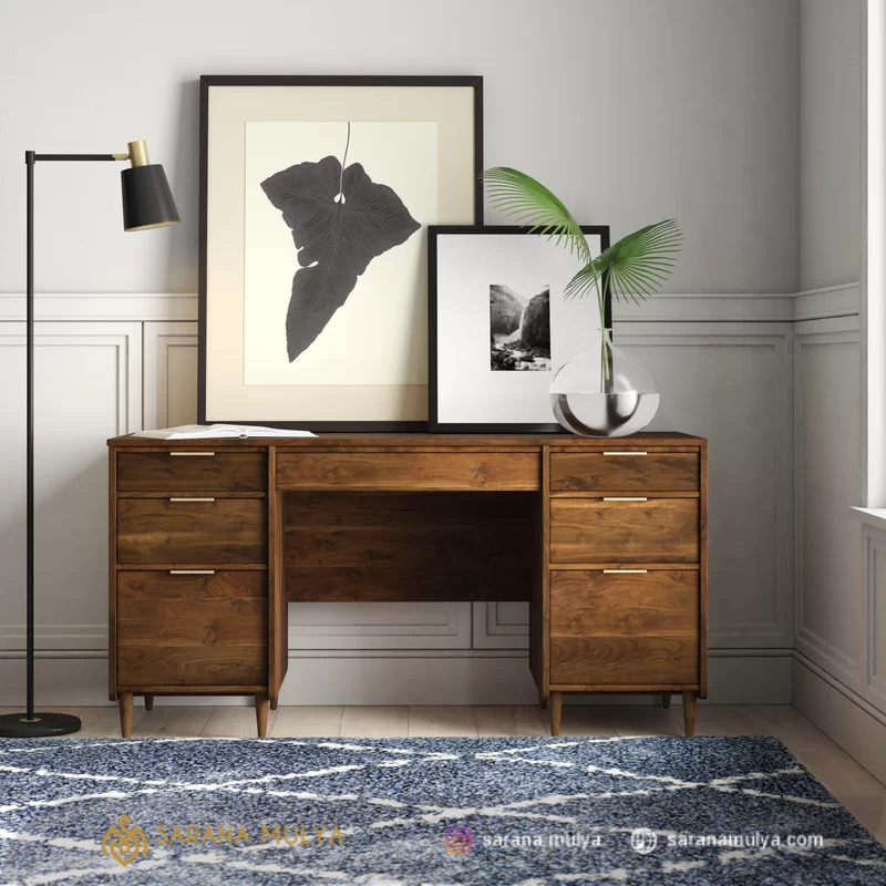 Meja Kerja Direktur Terbaru Minimalis Jati mampu mendukung suasana kerja agar semakin efektif dan nyaman. Dengan desain minimalis modern, menghadirkan kesan elegan di ruang kerja Anda. Meja kantor ini memiliki laci penyimpanan di ke-2 sisinya yang bisa digunakan untuk dokumen, arsip atau perlengkapan kerja lainnya menyimpan arsip atau kebutuhan kerja lainnya. Terbuat dari material kayu jati solid dengan proses pengerjaan yang mendetail menjadikan meja kantor ini presisi dan stabil. Tidak hanya itu, meja kantor ini juga memiliki permukaan yang halus sehingga mudah untuk dibersihkan. Dapatkan kenyamanan belanja online furnitur di saranamulya.com dengan rangkaian penawaran spesial.