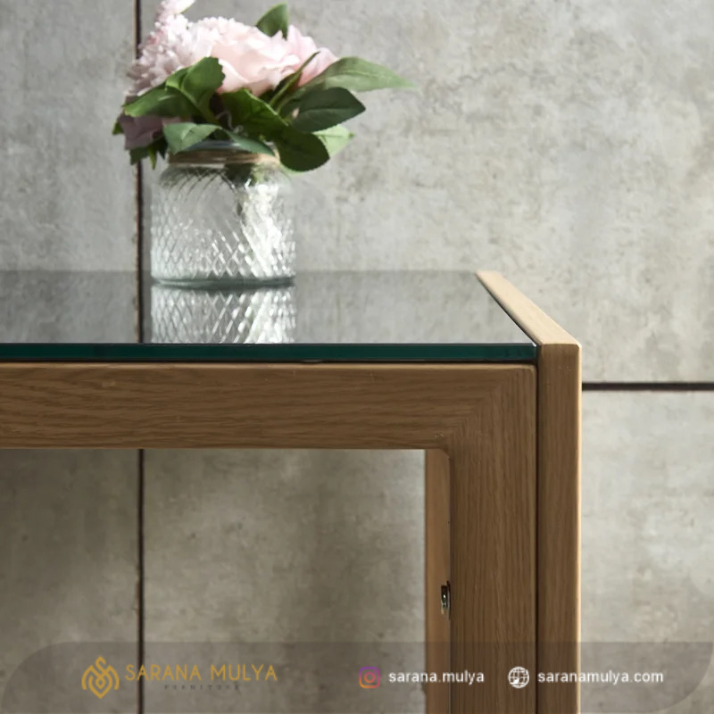 Spesifikasi Meja Kerja Minimalis Kaca Kayu Jati :