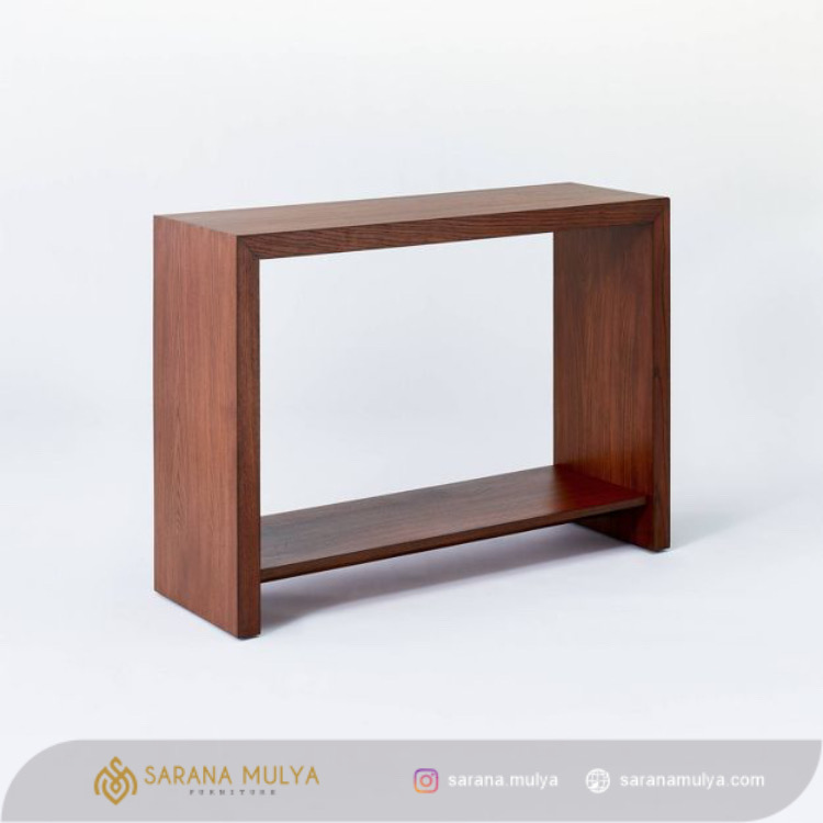 Menjadikan Meja Konsol Simple Kayu Jati Solid untuk membantu Anda meningkatkan dekorasi ruangan di rumah dengan mudah merupakan salah satu pilihan terbaik. Meja ini hadir dengan desain modern minimalis serta dibalut warna walnut yang memberikan aksen elegan dan juga mewah disaat yang bersamaan. Terbuat dari material kayu jati solid berkualitas dengan finishing halus yang sempurna, menjadikannya kuat, kokoh dan juga awet untuk penggunaan jangka panjang. Meja konsol ini dapat menahan beban dari berbagai barang dengan baik.