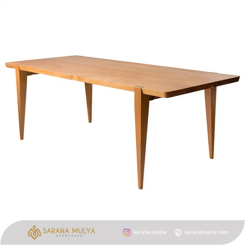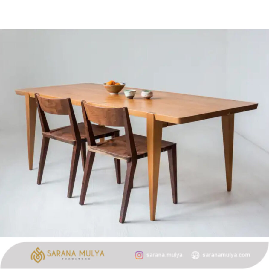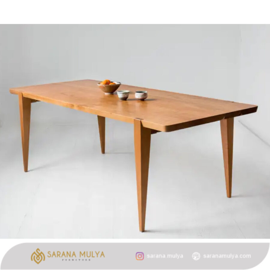 Meja Makan Murah Kayu Jati menghadirkan momen santap bersama keluarga di ruang makan menjadi lebih spesial. Hadir dengan desain minimalis modern, membawa suasana mewah pada interior ruangan anda. Meja ini terbuat dari material kayu jati solid berkualitas, dengan hasil akhir finishing yang halus dan warna natural kayu. Dirancangan struktur yang kuat dibuat oleh pengrajin kami yang sudah berpengalaman dalam pembuatan meja makan kayu sehingga tahan lama. Oleh karena itu, padukan dengan kursi makan bergaya senada untuk melengkapi kenyamanan ruang makan Anda.