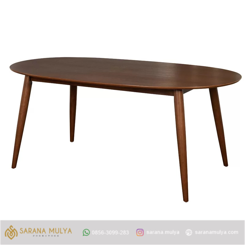 Meja Makan Oval Minimalis Jati Modern dapat menjadi pilihan yang tepat bagi Anda yang ingin mengisi ruang makan agar semakin nyaman. Ragam koleksi furnitur berkualitas dari saranamulya.com akan menjadikan waktu makan Anda bersama keluarga semakin menyenangkan. Meja makan minimalis ini bermaterial kayu jati solid dengan finishing semi glossy. Proses pembuatan meja makan oval ini telah melalui uji-fisik, konstruksi dan keamanan untuk memastikan kenyamanan dan tahan lama saat digunakan. Hadir dalam warna cokelat yang memberikan kesan hangat dan bersahabat. padukan meja makan kayu ini dengan kursi makan bergaya senada untuk melengkapi kenyamanan ruang makan Anda.