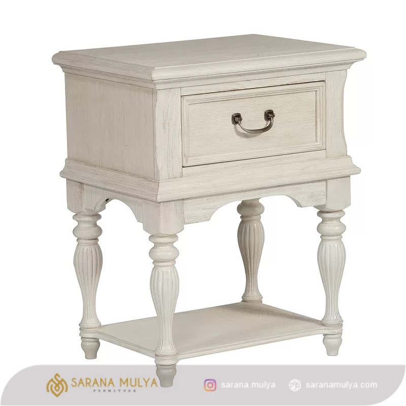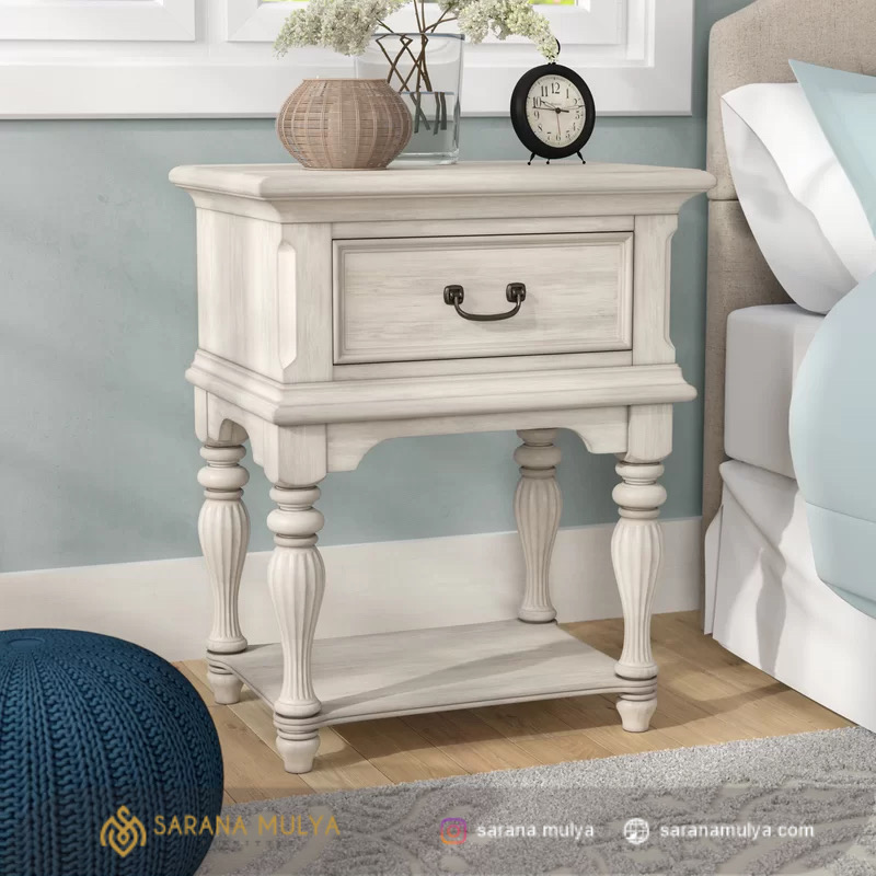 Lengkapi furnitur kamar tidur Anda dengan menghadirkan Meja Nakas Antik Kayu Minimalis ini memiliki desain modern abad pertengahan. Bukan hanya tempat tidur yang menjadi elemen penting dalam kamar tidur Anda, tetapi juga pelengkap seperti nakas kayu ini yang bisa membuat ruangan lebih mewah. Nakas minimalis di lengkapi dengan satu laci penyimpanan dan rak terbuka yang dapat di gunakan untuk menyimpan berbagai barang Anda. Di bagian atas cocok untuk meletakkan hiasan, jam weker maupun smartphone agar mudah dijangkau. Terbuat dari material kayu jati solid yang kuat dan berkualitas dengan finishing warna yang antik, cocok di padukan dengan beragam furnitur kamar tidur Anda.