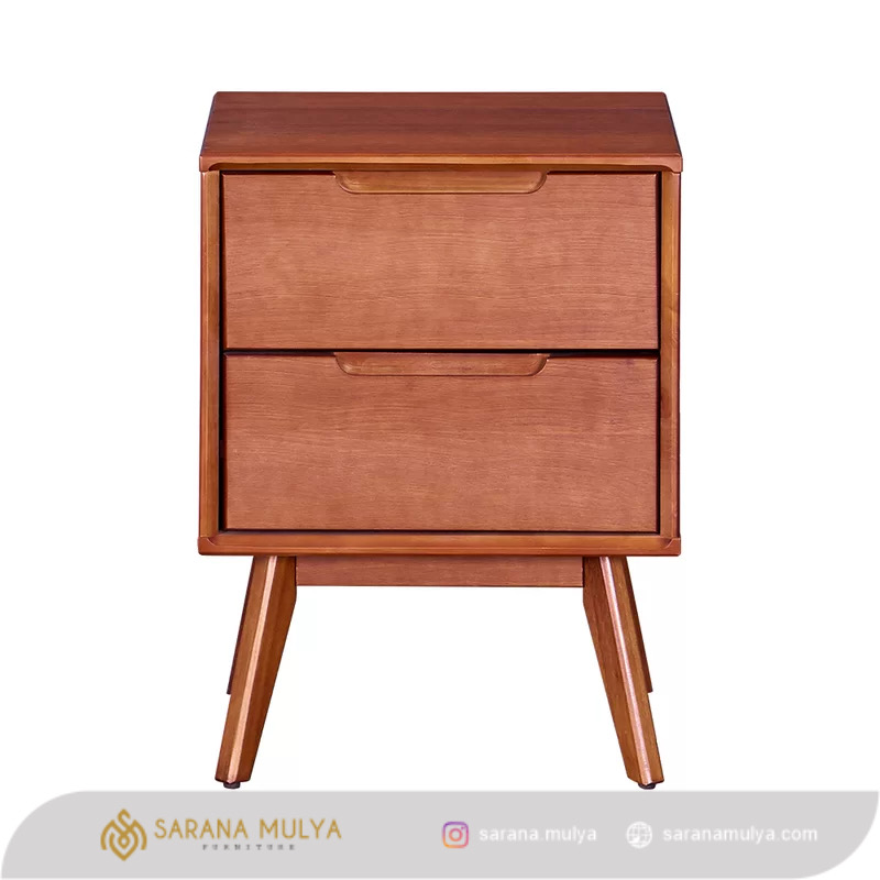 Kami menghadirkan Meja Nakas Kayu Jati Minimalis untuk melengkapi furnitur kamar tidur Anda. Bukan hanya tempat tidur yang menjadi elemen penting dalam kamar tidur Anda, tetapi juga pelengkap seperti nakas kayu ini yang bisa membuat ruangan lebih mewah. Meja akas minimalis ini memiliki desain modern abad pertengahan dengan di lengkapi dua laci penyimpanan yang dapat di gunakan untuk menyimpan berbagai barang Anda. Di bagian atas cocok untuk meletakkan jam weker maupun smartphone agar mudah dijangkau. Terbuat dari material kayu jati solid yang kuat dan berkualitas dengan finishing warna natural jati, cocok di padukan dengan beragam furnitur kamar tidur Anda.