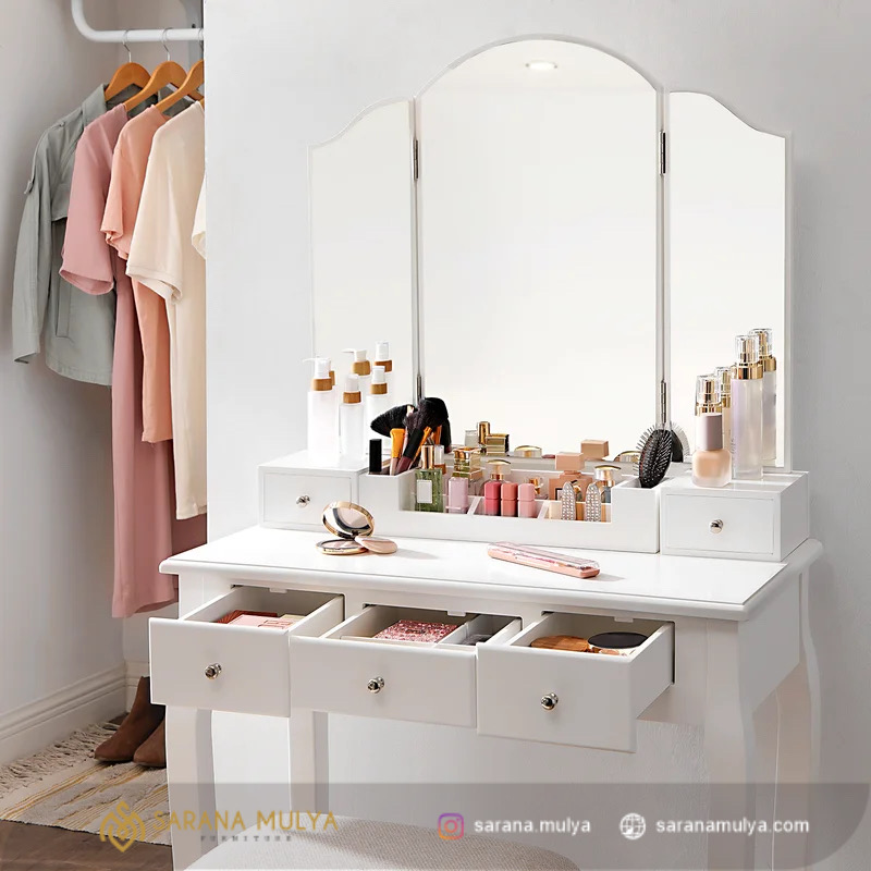 Saranamulya.com siap memenuhi kebutuhan furniture kamar tidur Anda. Kami juga menawarkan pengalaman belanja yang bisa di custom sesuai dengan keinginan Anda. Oleh karena itu, untuk melihat produk Meja Rias lebih banyak Klik ( Di Sini !! )
