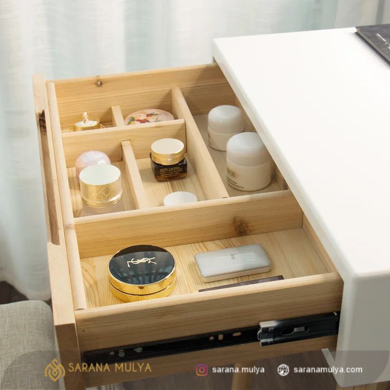 Kami siap memenuhi kebutuhan furniture kamar tidur Anda. Saranamulya.com juga menawarkan pengalaman belanja yang bisa di custom sesuai dengan keinginan Anda. Oleh karena itu, untuk melihat produk Meja Rias lebih banyak Klik ( Di Sini !! )