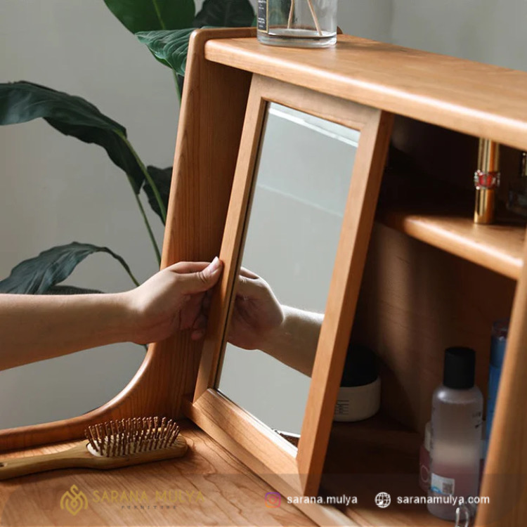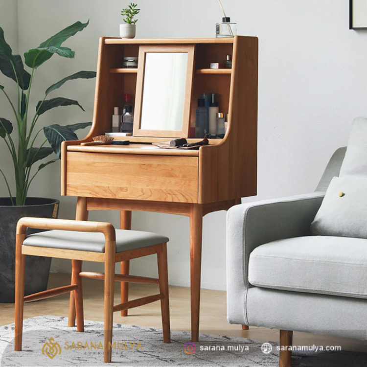 Padukan Meja Rias Minimalis Terbaru Kayu Jati ini dengan furnitur yang selaras seperti Nakas, Tempat Tidur, Lemari Pakaian, maupun Lemari Laci. Dapatkan penawaran spesial hanya di saranamulya.com.